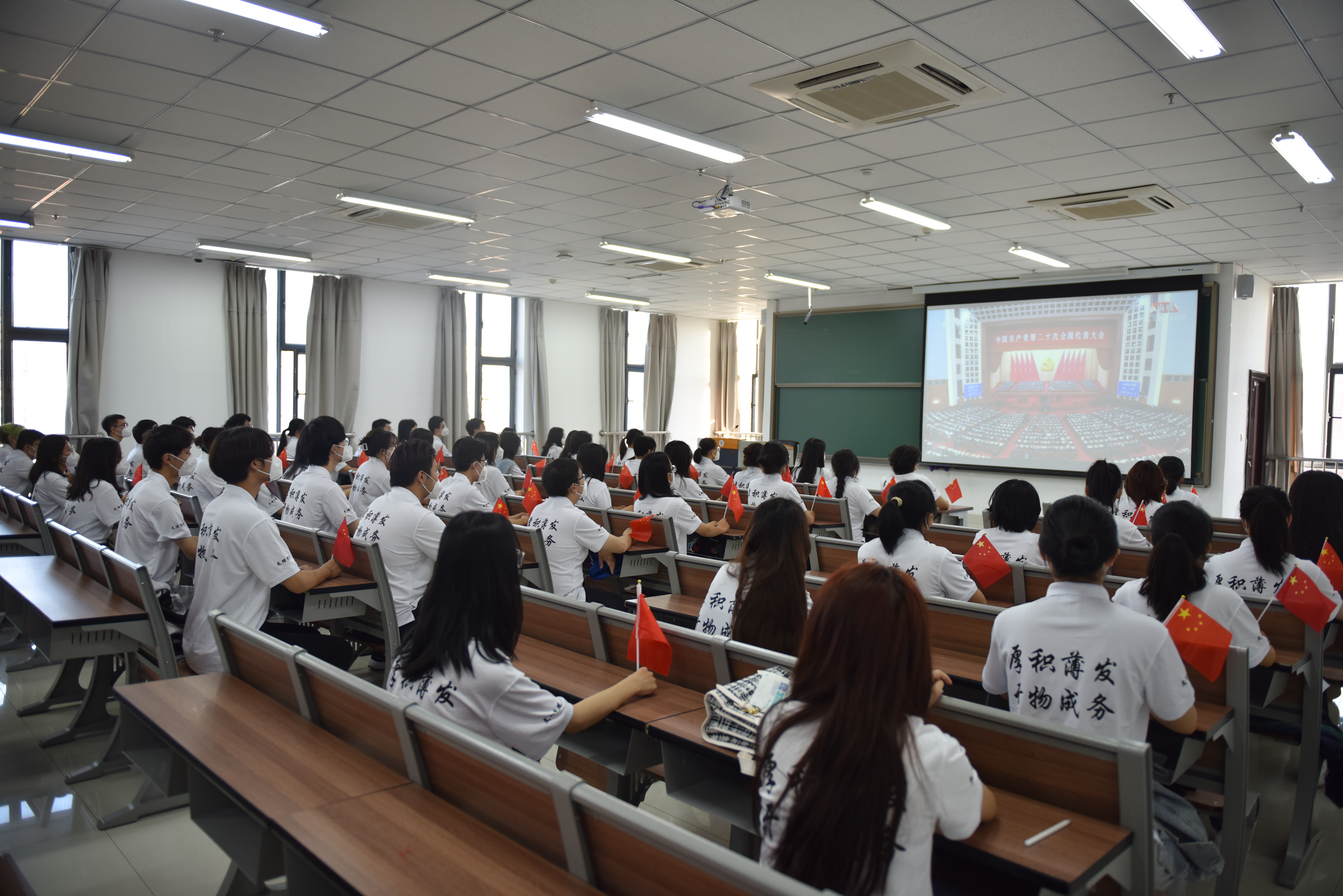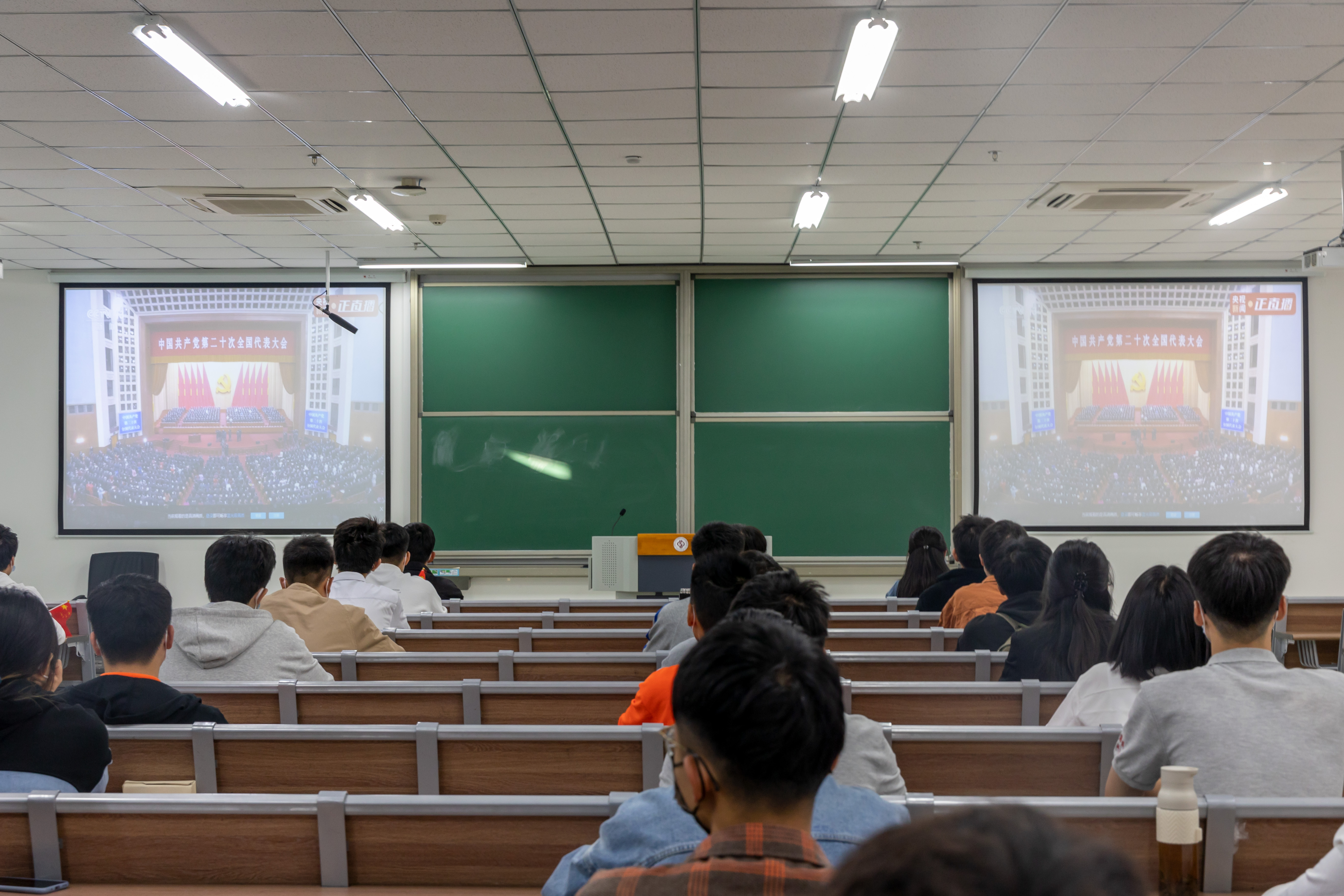 中国共产党第二十次全国代表大会16日上午在人民大会堂开幕,习近平代表第十九届中央委员会向党的二十大作报告。十年砥砺奋进,绘写壮美画卷。校区师生热切关注党的二十大召开,通过广播、电视、网络、新媒体等途径,收听收看党的二十大开幕会直播。校区领导、全体中层干部、思政课教师、机关教职工及学生代表在J2楼报告厅收看直播,各级党组织、各单位也都根据实际情况组织了集中收听收看。