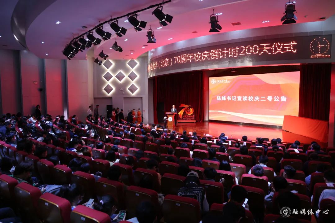 学校党委书记陈峰在仪式上宣读了学校70周年校庆(第二号)公告。他指出,作为新中国第一所石油高等学府,建校70年来,学校始终坚持扎根中国大地办大学,矢志一流,追求卓越。70周年校庆是学校在新时代新征程上的一个重要里程碑,学校将以“踔厉奋发七十载,勇毅前行向未来”为70周年校庆主题,通过办好学术校庆、开放校庆、文化校庆、暖心校庆,沉淀办学历史、展示办学成就、推进文化传承创新、汇聚办学力量、凝聚师生人心,向着能源领域特色鲜明的世界一流研究型大学的宏伟目标阔步迈进,为实现中华民族伟大复兴贡献力量。