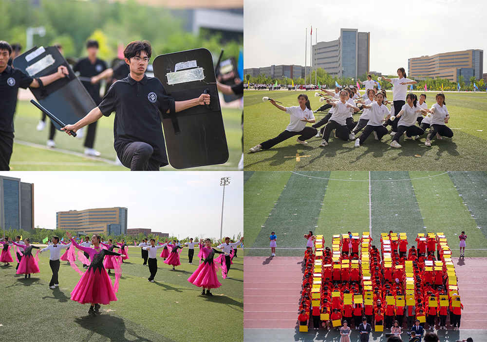 刚健有力的军体拳、跃动的健美操、行云流水的武术、活力四射的舞蹈体现出青年学子的飒爽英姿和生机勃勃。