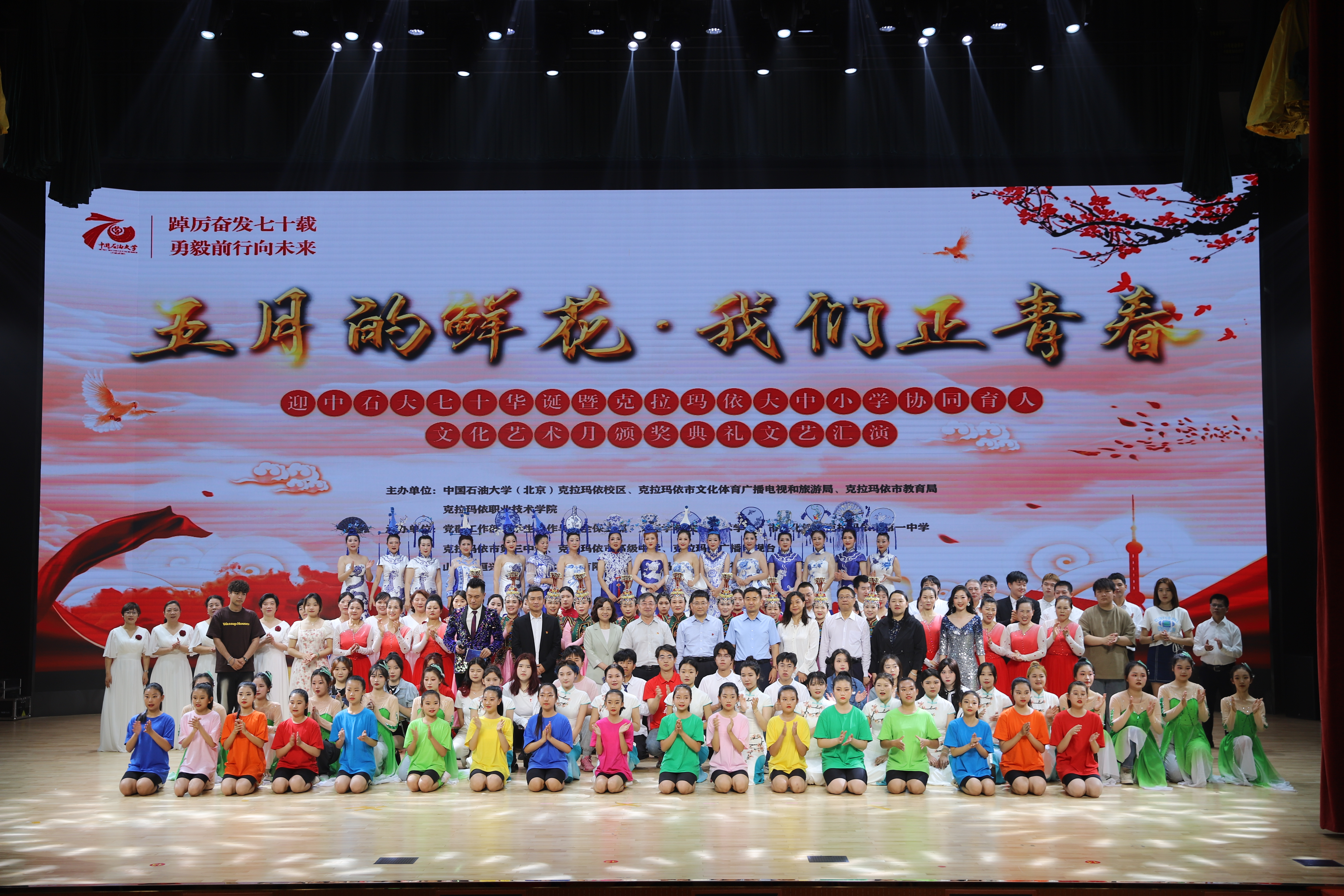 5月21日下午,校区举办迎中石大七十华诞暨大中小协同育人文化艺术月颁奖典礼文艺汇演。克拉玛依市委教育工委常务副书记唐勇,市教育局局长李国莲,校区党委副书记、纪委书记胡庆喜出席活动。克拉玛依职业技术学院党委书记魏新,市文旅局副局长杨蕾,市文化馆馆长刘涛,市第一中学副书记广蕊、市高级中学副校长王文新、市第三中学副校长潘利军,山东恒瑞兴域石油技术开发有限公司副总经理李洪凯及大中小学师生代表参加此次活动。