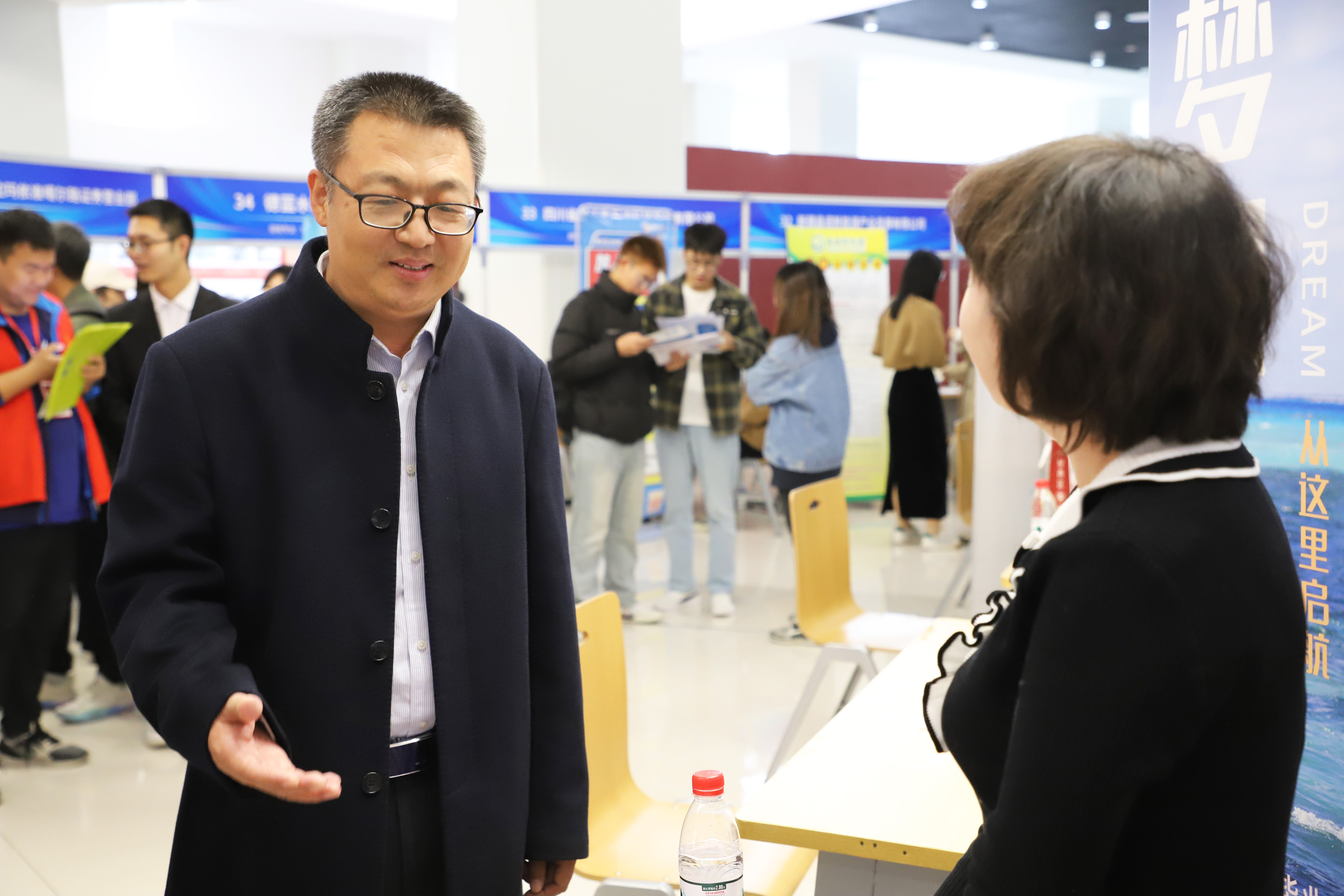 招聘会期间,校区党委书记刘坚、校长李军来到招聘会现场,看望招聘单位代表与求职毕业生,了解招聘单位需求,鼓励毕业生把握机会、积极求职。相关职能部门和学院负责人、2024届毕业班辅导员等也来到双选会现场,实时关注毕业生求职状态。