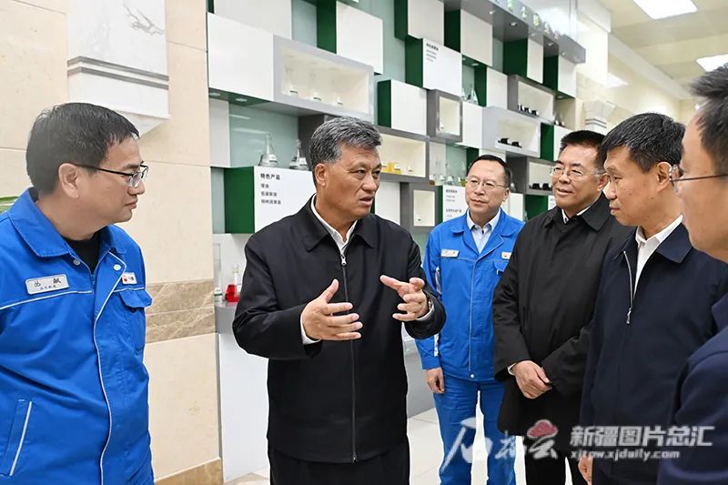 马兴瑞先后走进新疆油田公司和克拉玛依石化公司,实地察看了解油气勘探开发、新能源发展、原油加工等情况,强调要立足克拉玛依产业基础和优势,统筹推进石油炼化一体化发展,扩大油气开采规模,加大就地加工转化力度,拓展延伸石化产业链条,大力发展绿色循环经济,加快培育上中下游产业有效衔接、功能配套完善的产业集群,做大做强“油文章”。