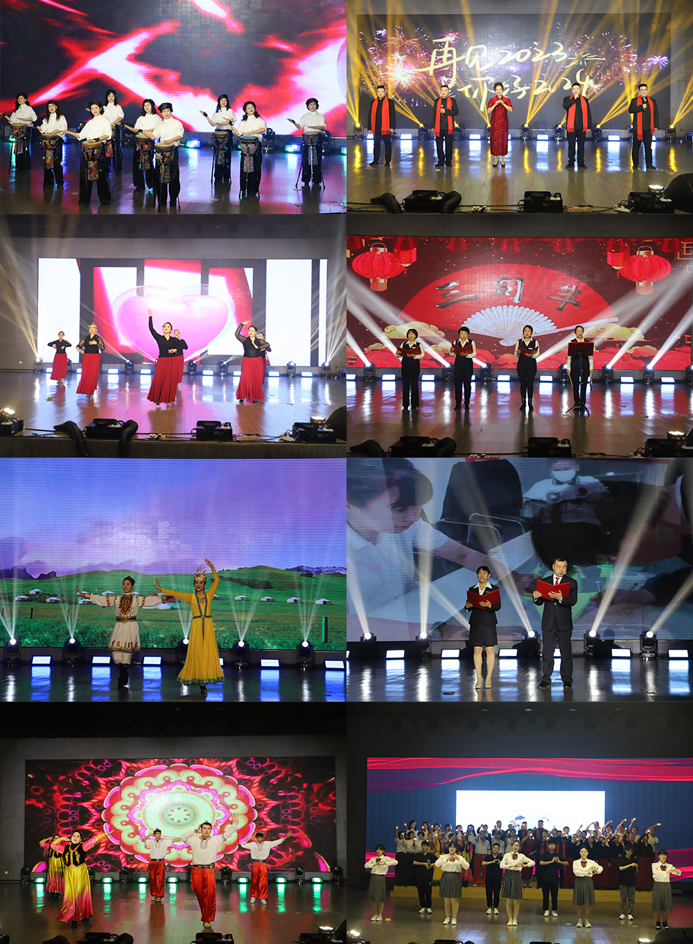 大会以开场节目《非洲鼓》拉开序幕。来自各单位的后勤工作人员通过合唱、舞蹈、朗诵、豫剧等多种节目形式,从不同角度展现出了他们甘于人后、勤于人先的精神风貌。原创节目《三句半》和朗诵节目《沉默而付出的践行者》,真切流露出后勤工作人员忠于职守、爱岗敬业、服务至上、无私奉献的高尚品德。