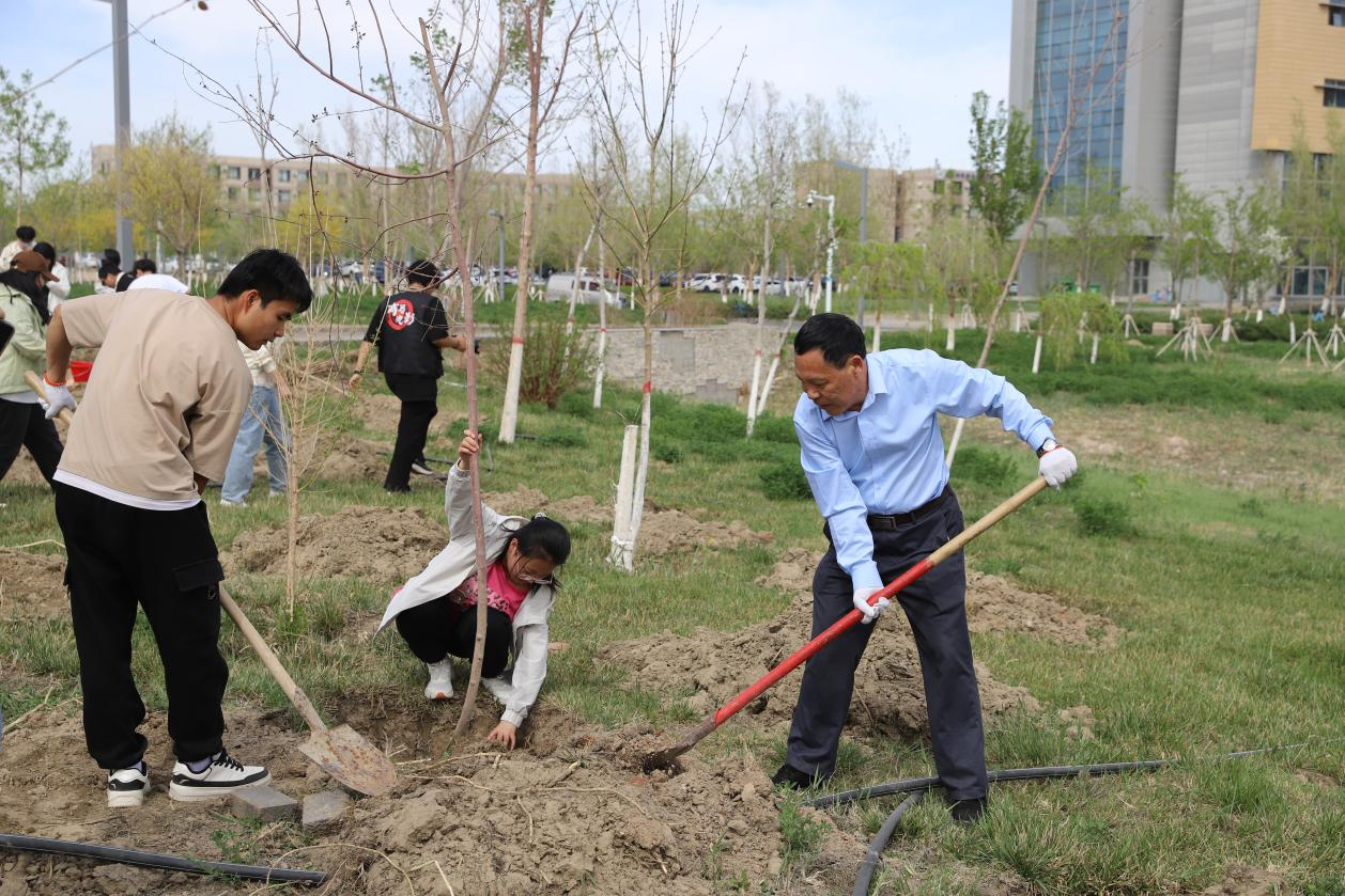 自治区党委教育工委、自治区教育厅一级巡视员胡军海,克拉玛依市委副书记、教育工委书记、一级巡视员王冰,学校党委书记王同奇、党委副书记蒲俊霖,克拉玛依校区校长李军,自治区、克拉玛依市和学校相关职能部门负责人,校区领导班子和职能部门、学院负责人,援建教师代表,在校师生代表共210余人参加活动。活动共种植观赏海棠、小叶白蜡、丁香等260株树苗。