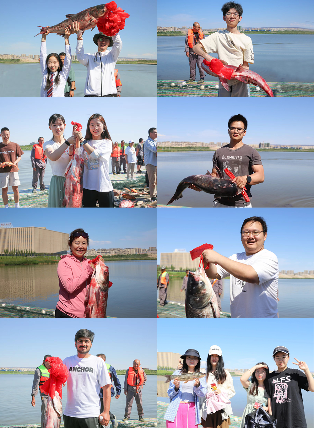 “一、二、三,收网喽!”伴随着响亮的口号,碧波荡漾的红山湖上一片欢腾。本次捕捞收获颇丰,共计捕获1000多公斤鱼,将用于制作全鱼宴以及椒麻鱼、清蒸鱼、酸菜鱼、红烧鱼等4种单人套餐供全校师生免费品尝。