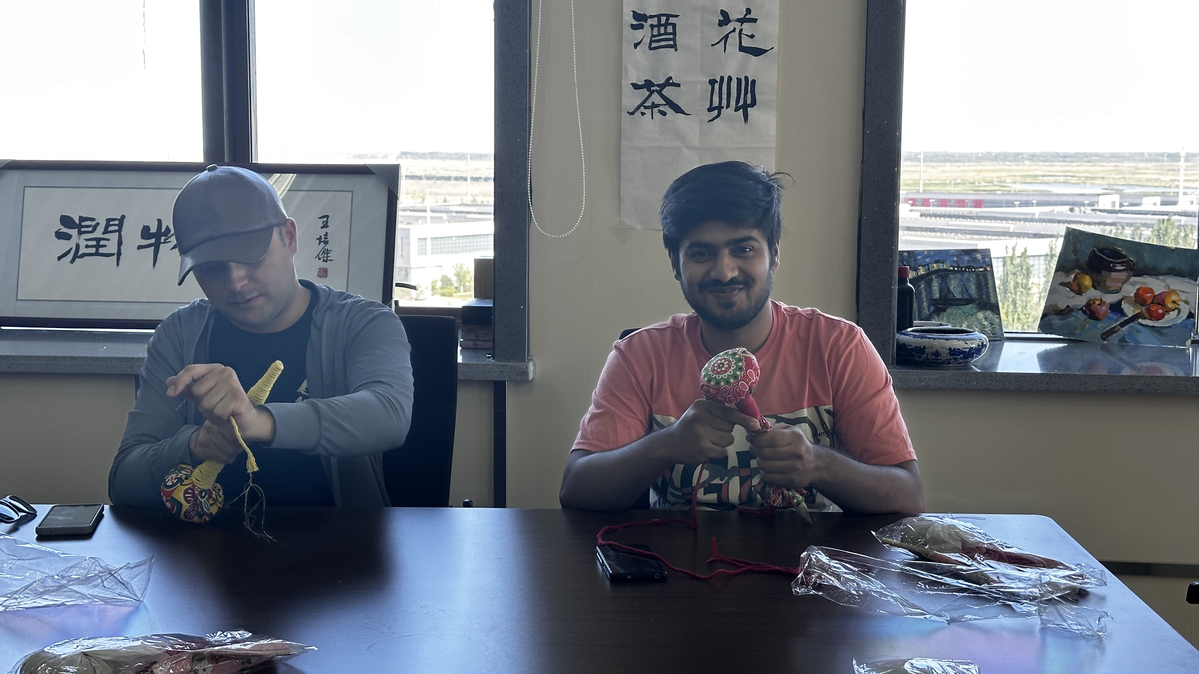 活动中,兰时香社发起人龚珏详细介绍了艾草的功效和禁忌、艾草香锤用于养生的8种使用方法。老师和留学生们在工作人员的指导下现场制作艾草香锤。