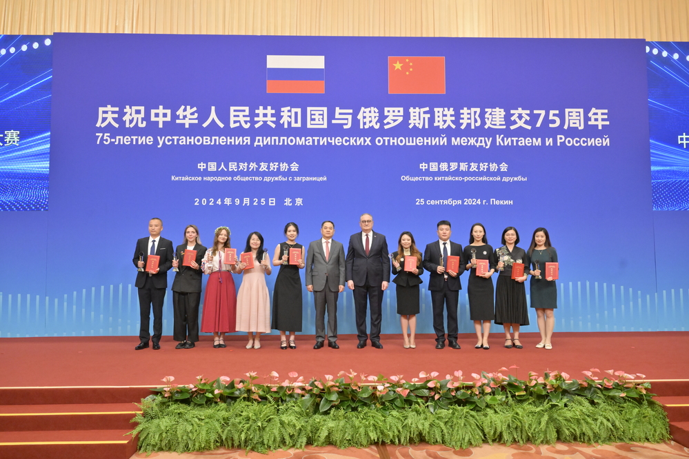 9月25日,由中国人民对外友好协会和中国俄罗斯友好协会共同举办的庆祝中俄建交75周年招待会在北京举行。中共中央政治局委员、全国人大常委会副委员长李鸿忠,中俄友好、和平与发展委员会中方主席夏宝龙,中国人民对外友好协会会长杨万明,全国人大常委会副秘书长胡晓犁,生态环境部副部长赵英民,俄罗斯驻华大使莫尔古洛夫出席活动。校区微视频《中俄留学情,缔结新疆约》荣获本次大赛最佳创意奖、优秀作品奖两项奖项。参赛视频获得克拉玛依市外事办的大力支持。