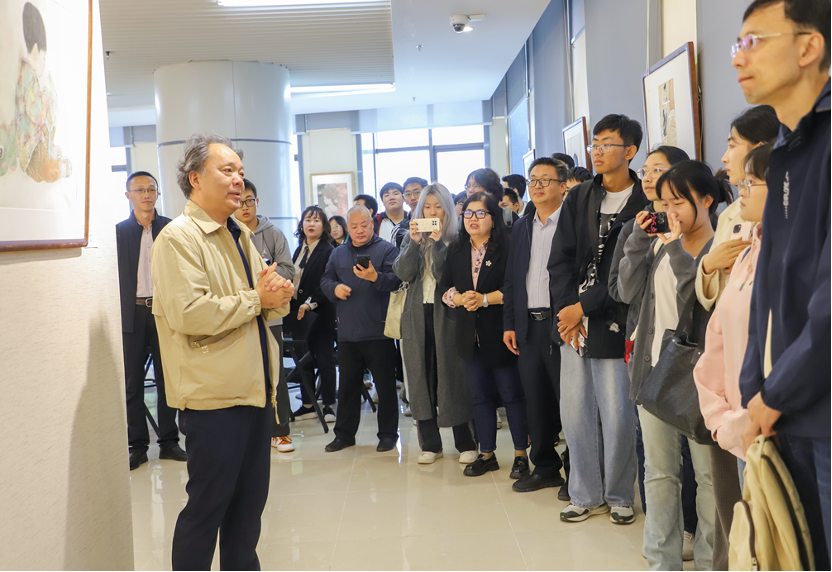 此次展览以中国画这一独特的艺术形式,承载千年文明的精粹与哲思,通过105幅精选佳作,生动展现了新疆大地上的自然之美、人文之韵与时代之变。从山水的巍峨壮丽到花鸟的生动灵趣,从人物的传神刻画到题材的民生关怀,每一幅作品都是艺术家们对这片土地深情厚谊的抒发,是对中华民族共同体意识的深刻诠释。开幕式结束后,领导嘉宾及校区师生书画爱好者步入展区,欣赏一幅幅佳作,他们或驻足凝神,或交流分享,或拍照留念,共赏艺术之美。