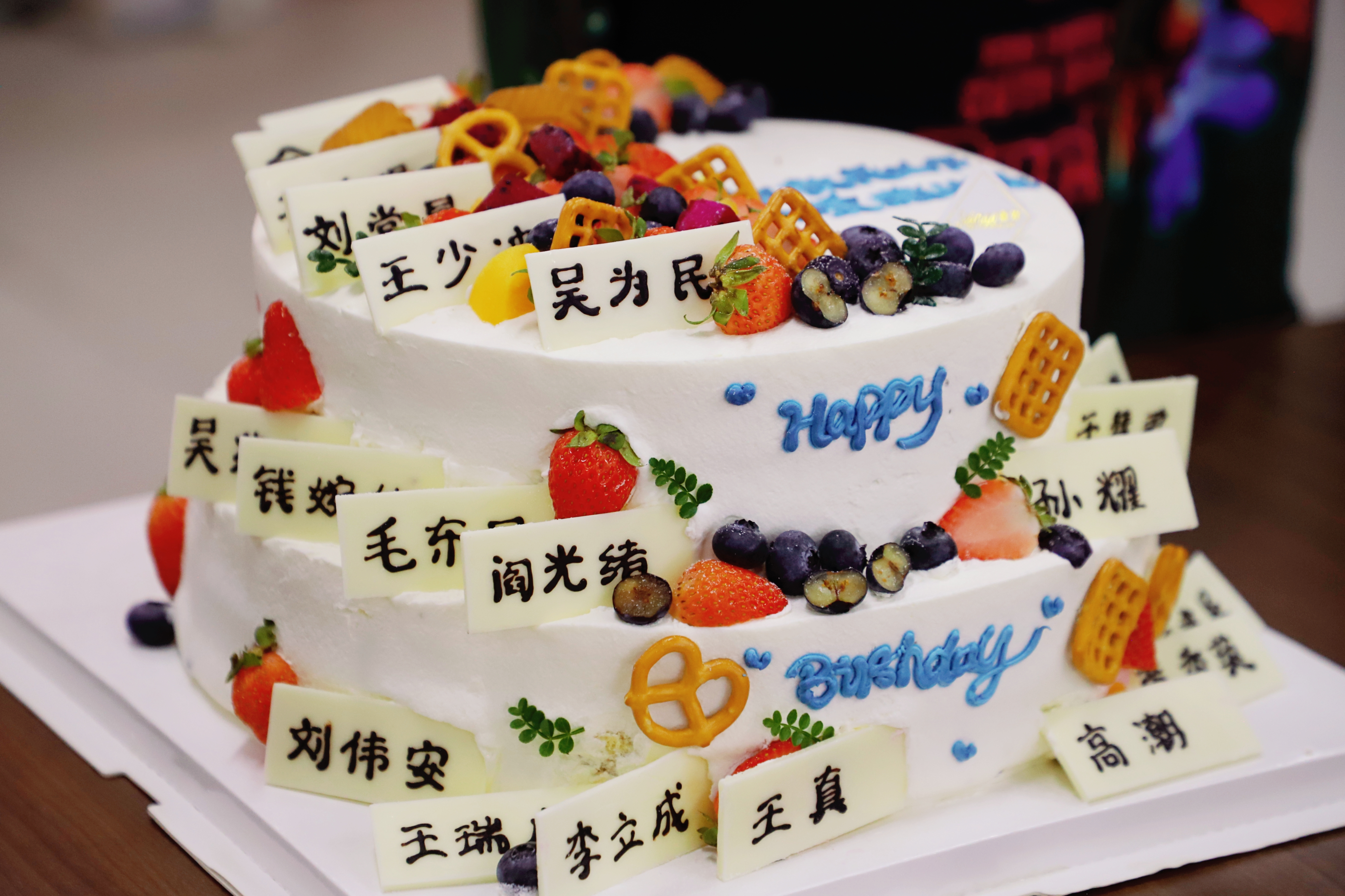 下午4时许,活动室已布置得十分温馨,刻有过生日老师名字的“巨型”蛋糕也已摆上桌面,洋溢着喜庆的气息。