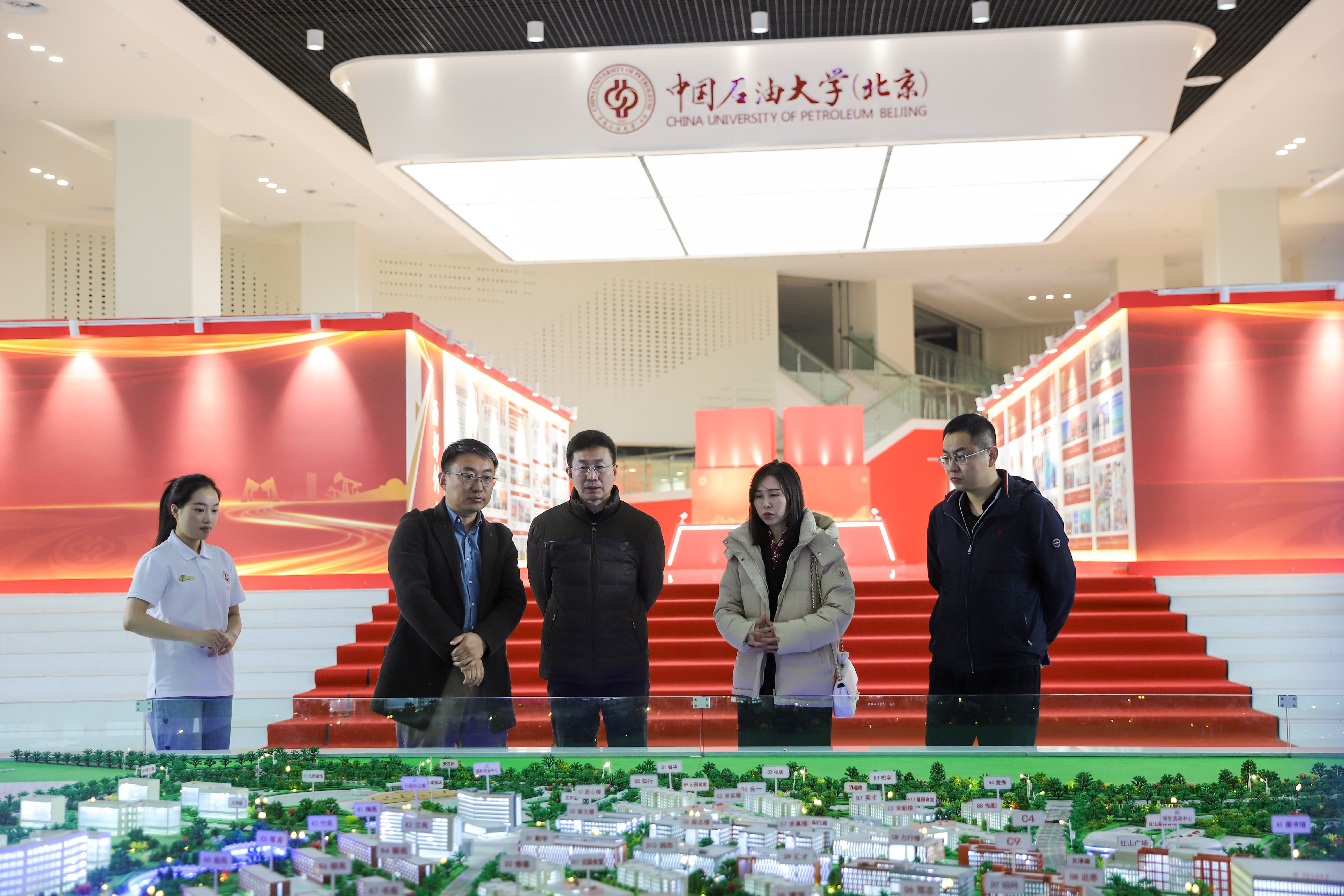 调研期间,王长树一行参观了学校办学成就展和校区全景沙盘,了解了学校服务国家战略、心怀“国之大者”,在北京、东营、克拉玛依三次创业的艰辛历程。实地调研了分析测试中心、采油鉴定实训厂房、图书馆、体育馆,全面了解校区基础建设情况和校区“两个四年不断线”人才培养特色。