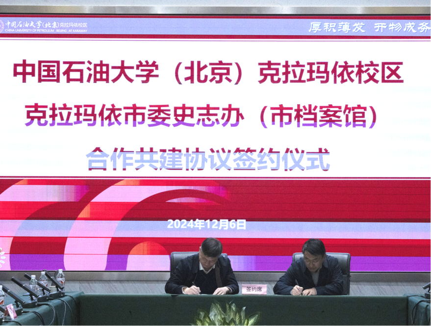 12月6日,校区与克拉玛依市委史志办(市档案馆)合作共建协议签约仪式在J2国际交流中心会议室举行。校区党委副书记徐长亮,克拉玛依市委史志办主任(馆长)蒋玉林、副主任(副馆长)牟建平、副主任(副馆长)闫永志出席签约仪式。双方相关工作负责人参加签约仪式,签约仪式由石油学院党委副书记胡瑞主持。