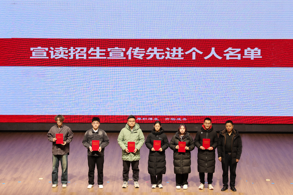 学生工作与安全保卫部主任林强为2024年招生宣传先进个人颁奖。教务部工作人员向队伍代表介绍返乡宣传材料及宣传注意事项。