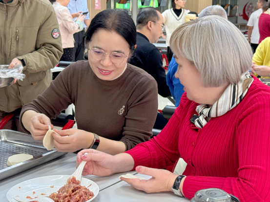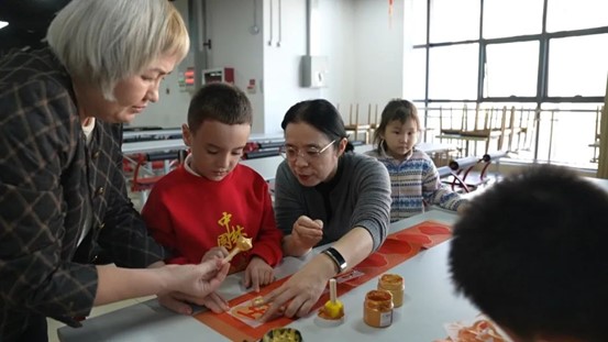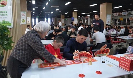 中外师生一起写对联、绘福字、包饺子