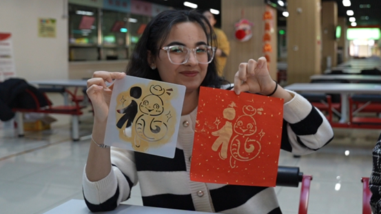 利比里亚留学生法如门:“蛇年春节带给了我超多惊喜!校区组织了很多有趣的活动,我和老师同学们一起包饺子、贴春联,还在克拉玛依体验了滑雪,尝试制作了非遗文化的香囊和剪纸,这些活动让我体验到了中国春节的喜悦,新的一年,祝大家万事如意、心想事成!”