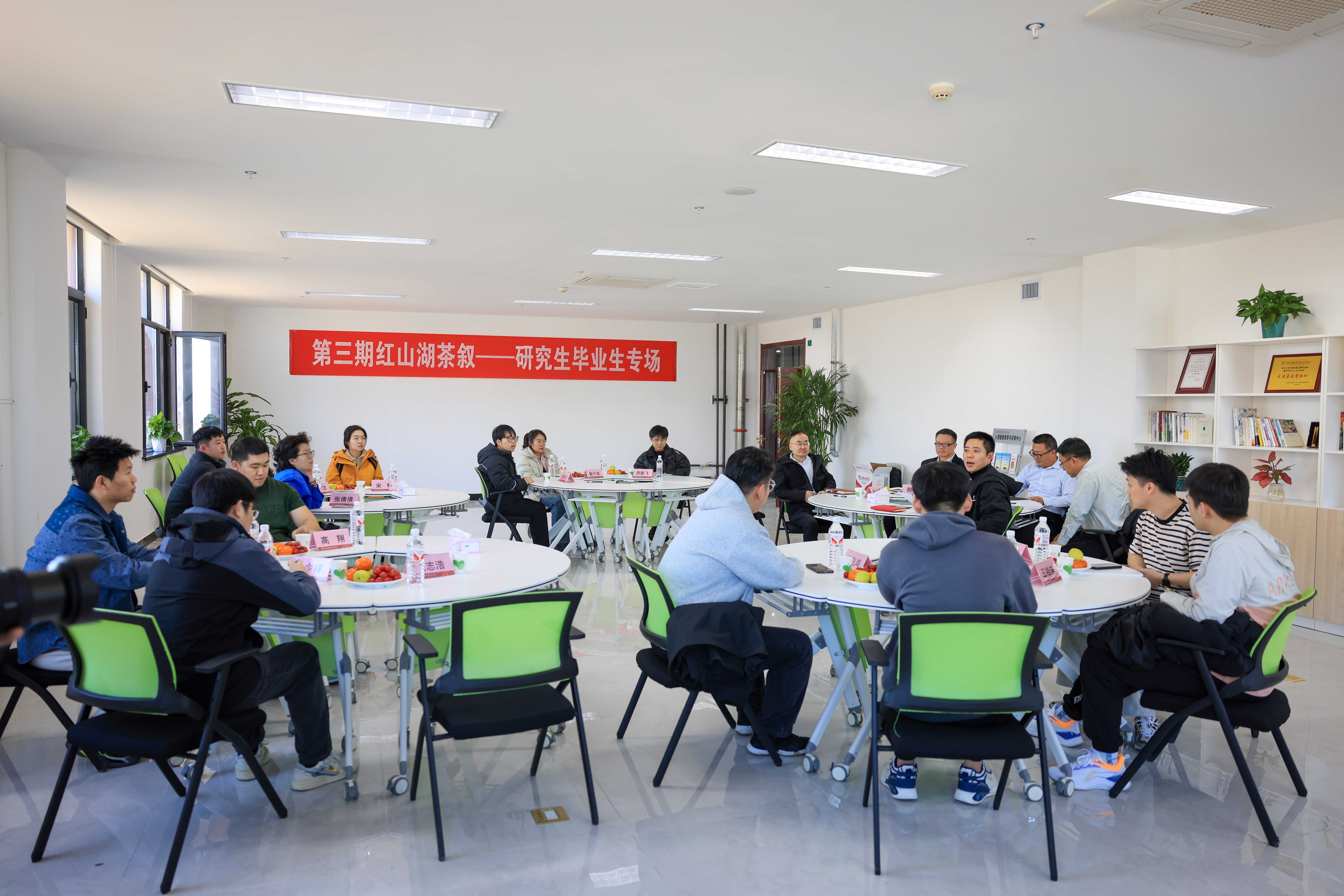 校区首届全日制研究生毕业生即将圆满完成学业。3月14日下午,第三期红山湖茶叙—研究生毕业生专场在学生活动中心308教室举行。校区校长李军、党委副书记徐长亮、副校长邢晓凯、相关职能部门负责人与14位研究生毕业生代表共品香茗,畅谈未来。