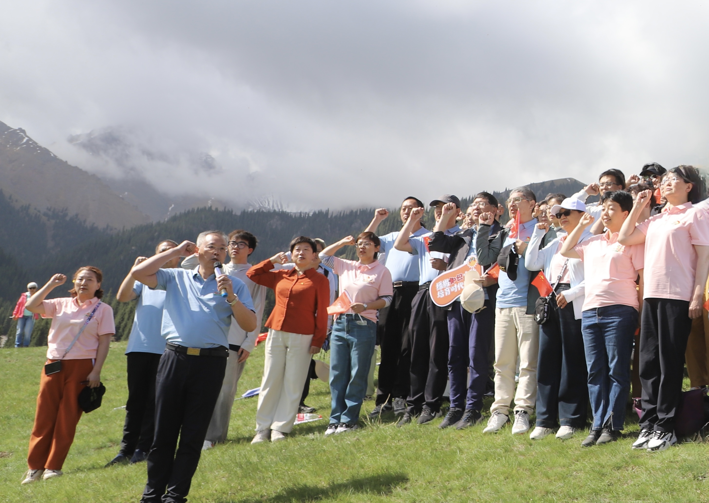 微党课结束后,全体党员重温入党誓词,铿锵誓言与巍峨山峦共鸣,凝聚起“为党育人、为国育才”的坚定信念。实践团教师纷纷表示,将以更加饱满的热情、更加激昂的斗志、更加坚定的信念投身于教育事业中。