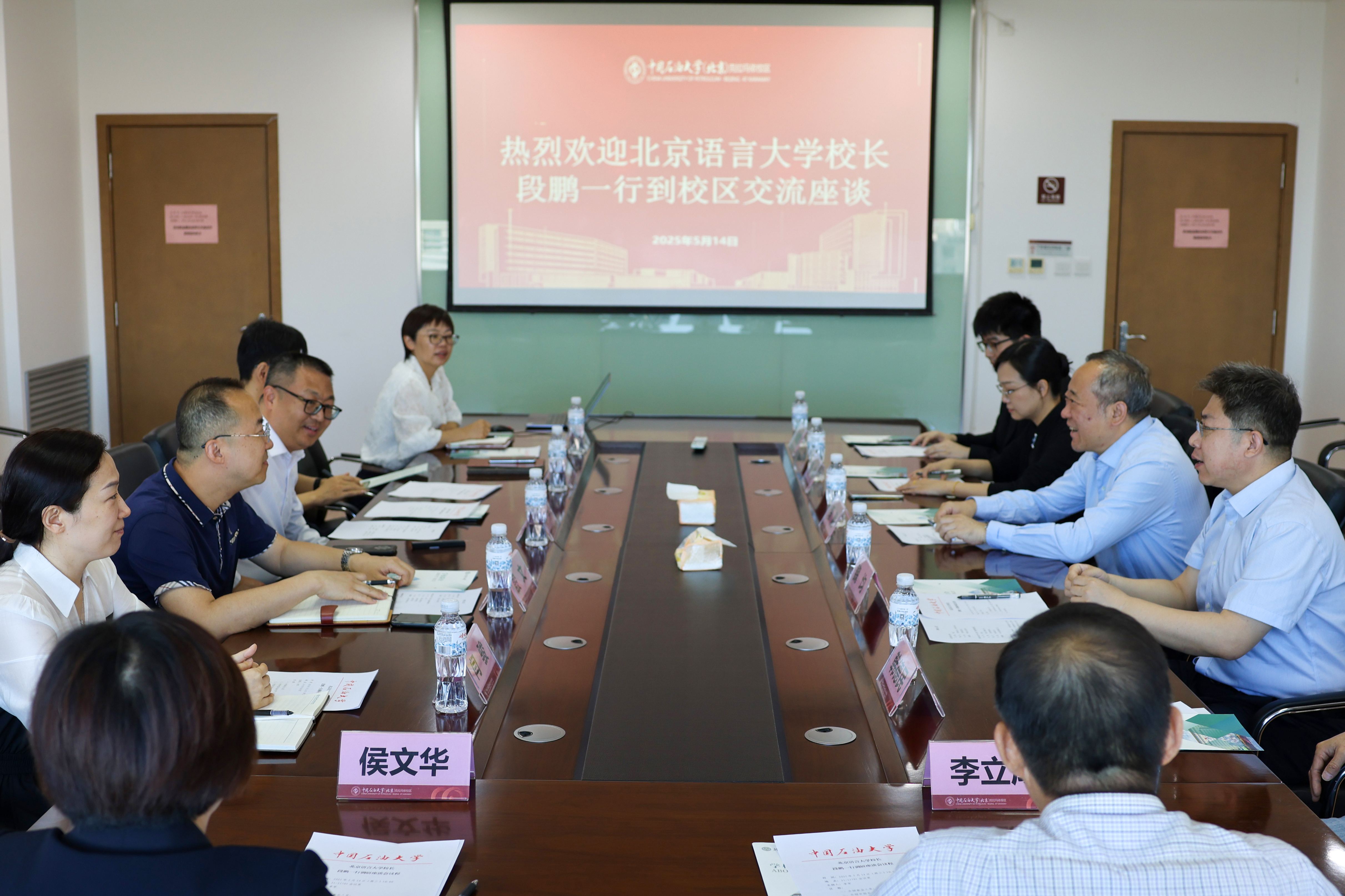 会上,李军对段鹏一行表示热烈欢迎,对北京语言大学为校区师资队伍建设及学科发展作出的贡献表示衷心感谢。校区组织人事部主任宋强介绍了校区基本情况,段鹏介绍了北京语言大学基本情况和学科特色优势。双方就中外合作办学、人才队伍建设、教师国情教育、优秀留学生暑期实践项目、文化润疆平台建设等进行了深入探讨,共同探索对口援建工作新机制、新模式。