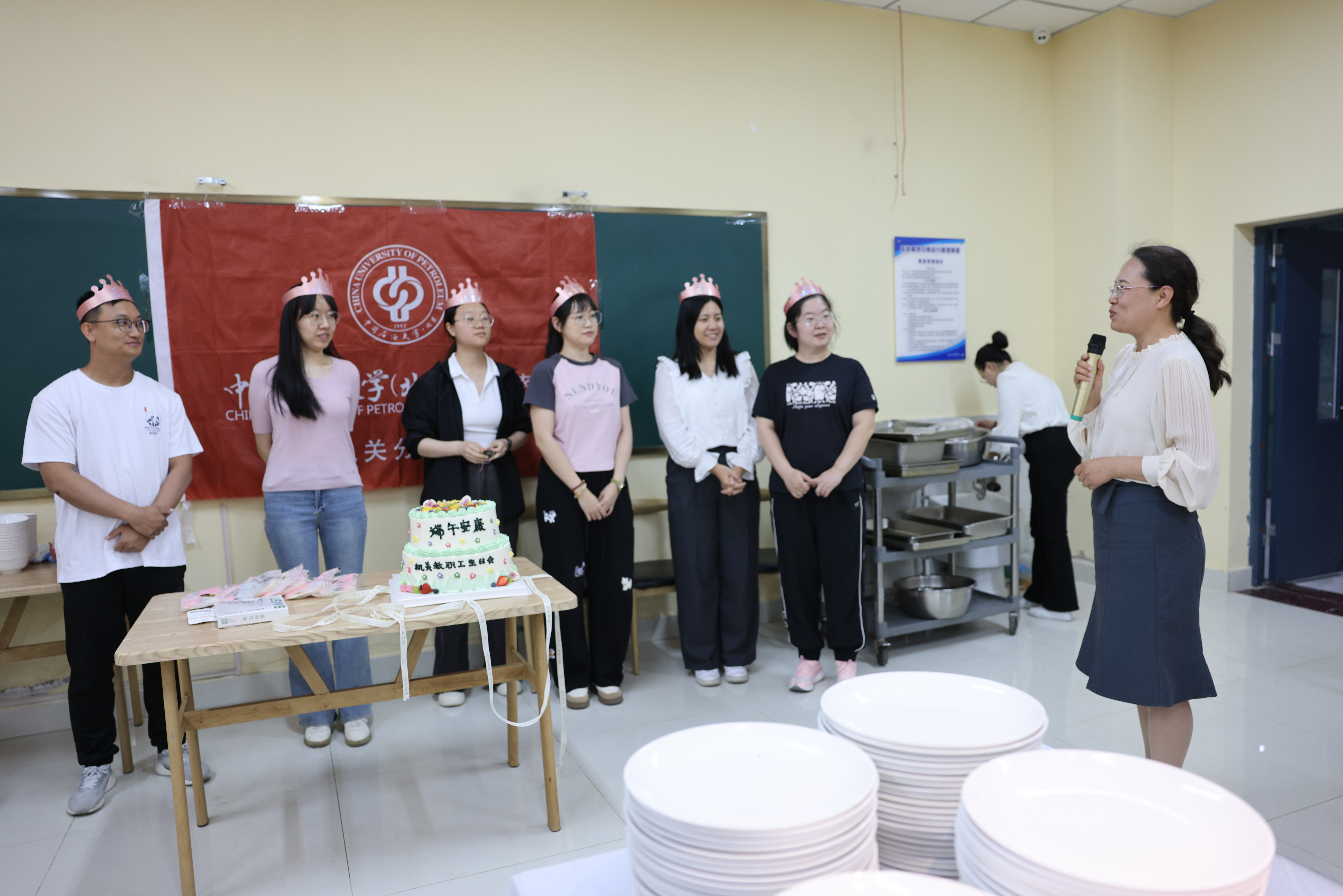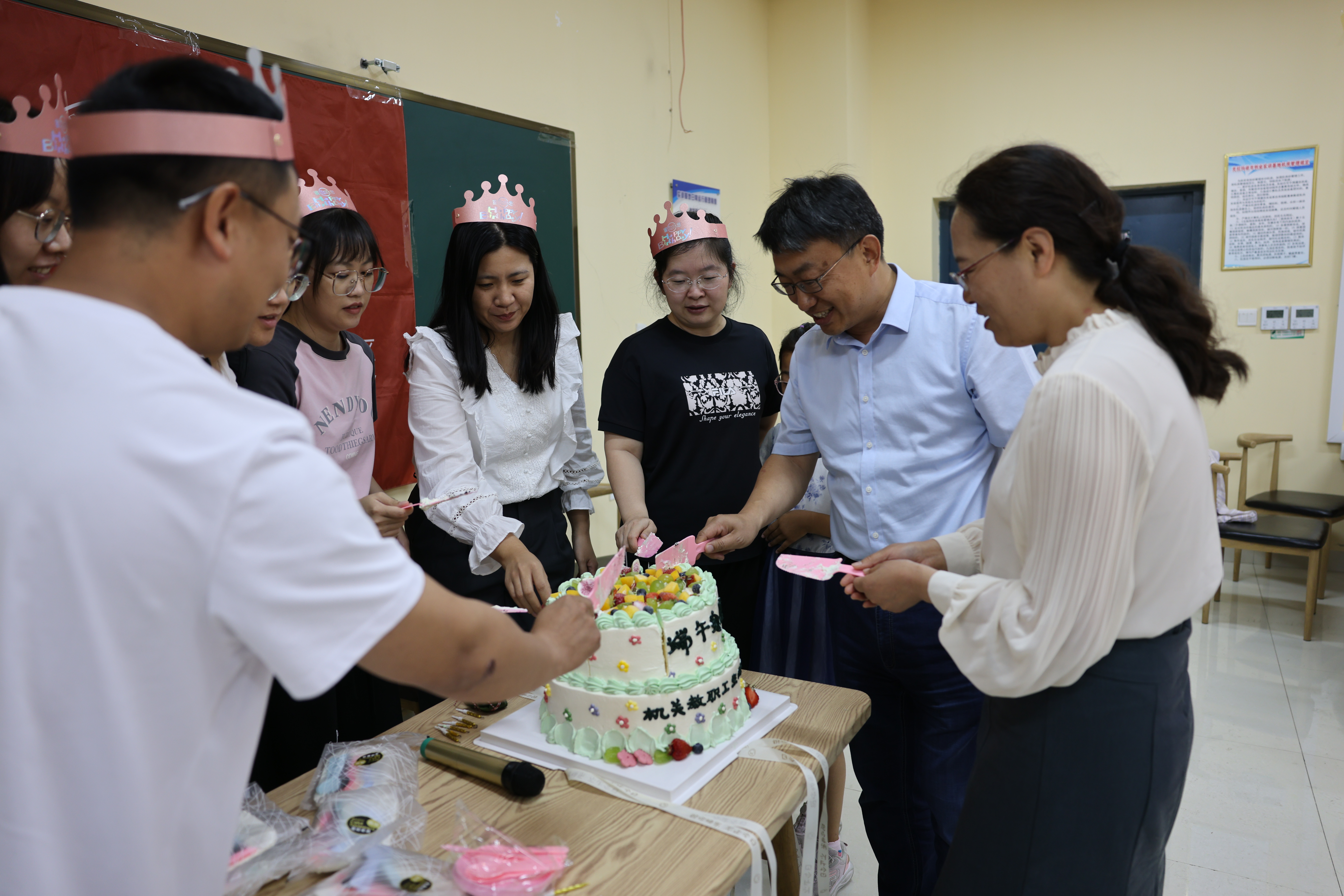 随后,机关工会为5-6月生日的教职工举办了温馨的集体生日会。寿星们戴上生日帽,在烛光与歌声中许下心愿,共享甜蜜蛋糕。李丽平部长送上诚挚祝福,祝愿老师们生日快乐、工作顺利、端午安康,共同书写校区发展新篇章。