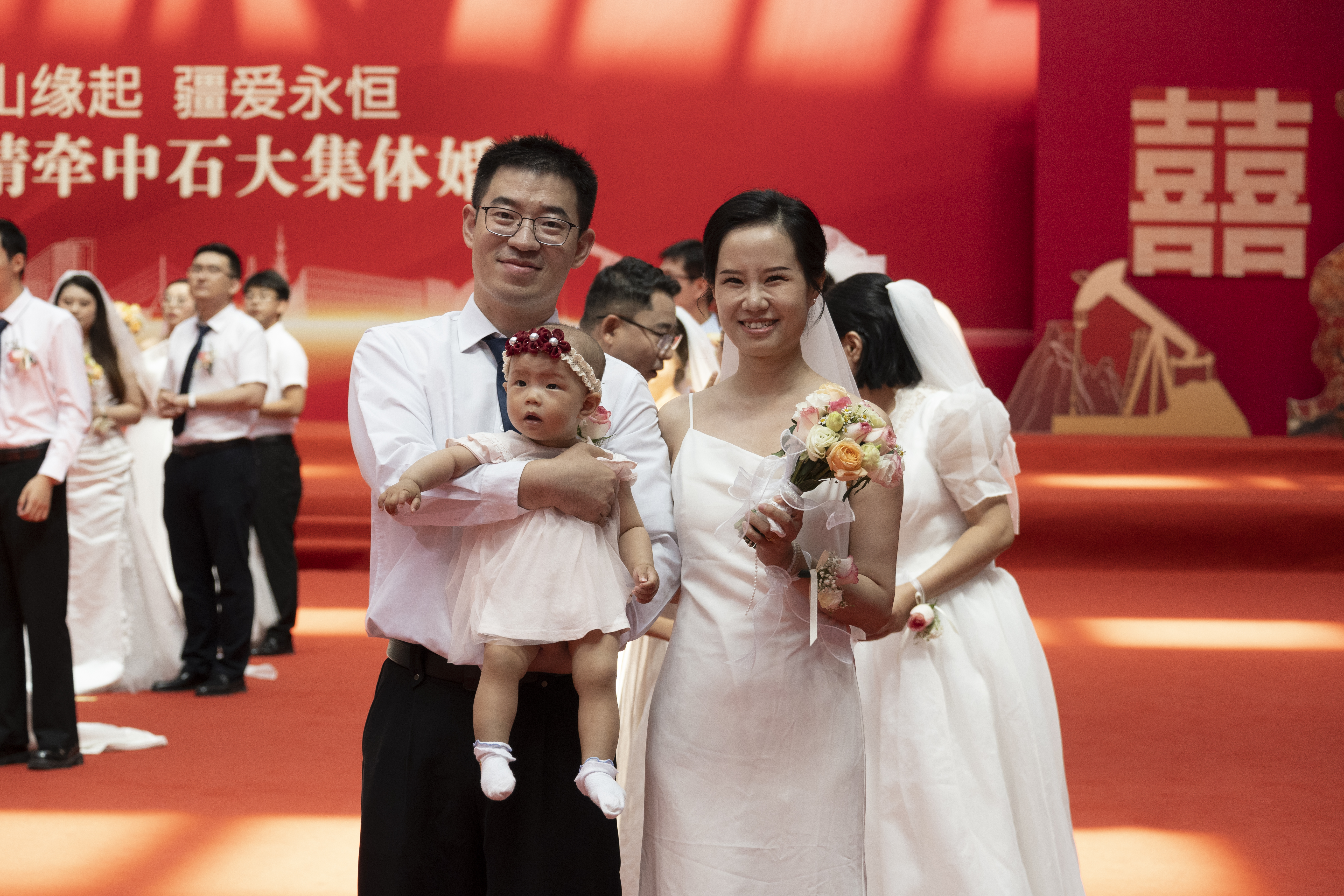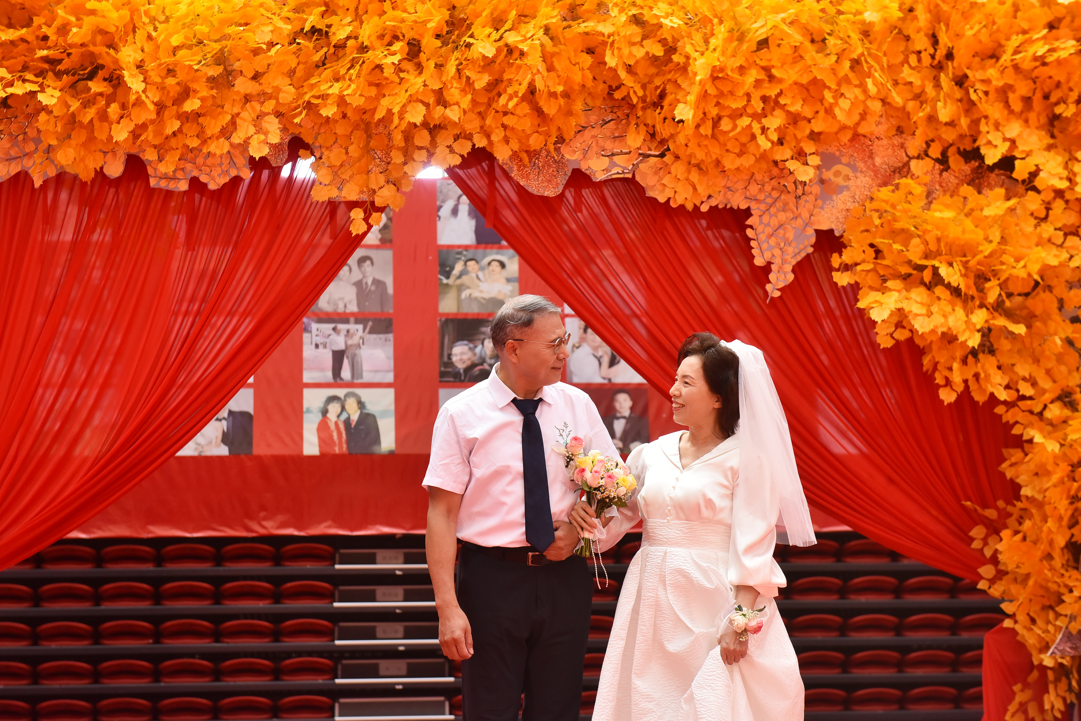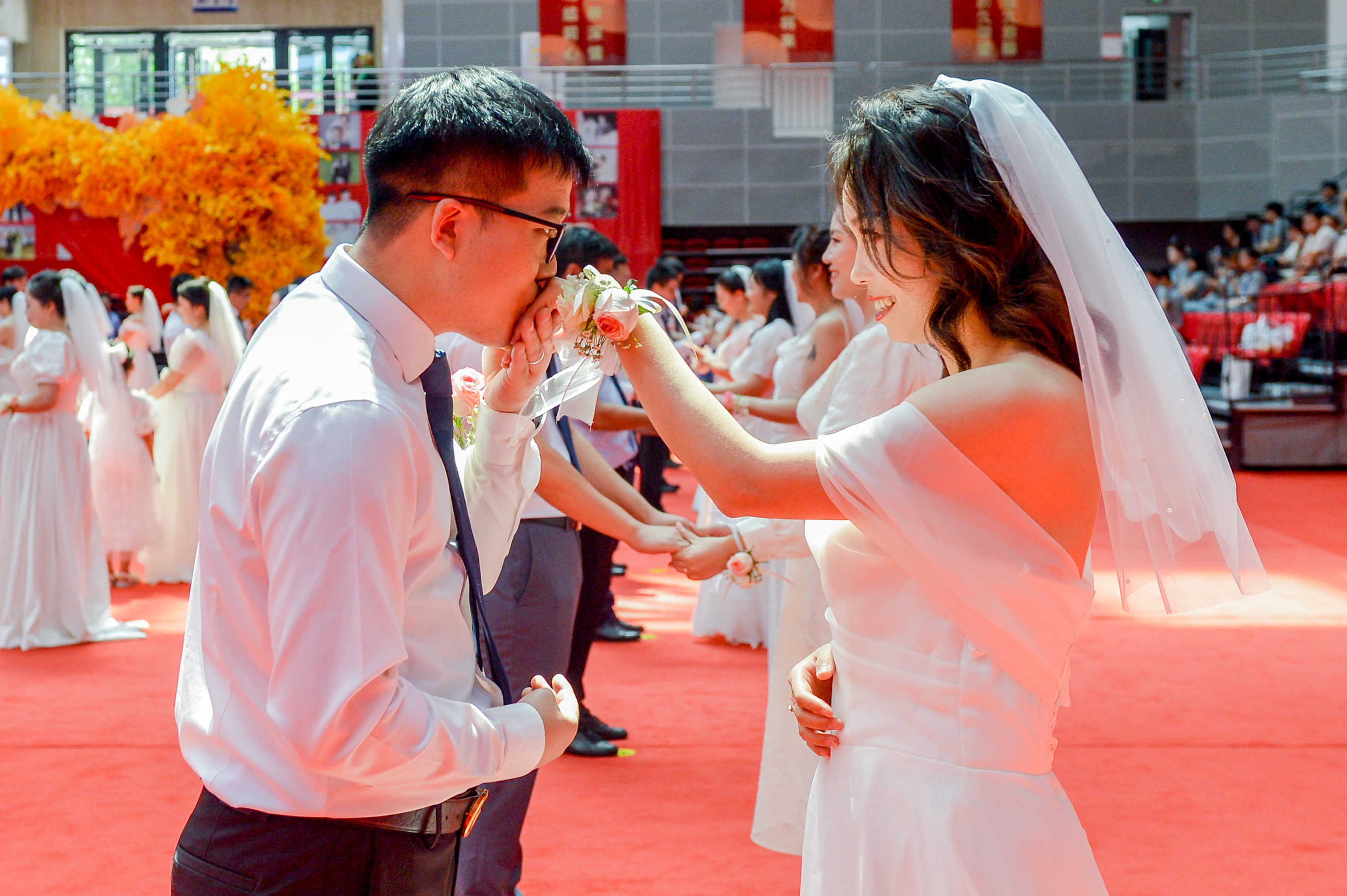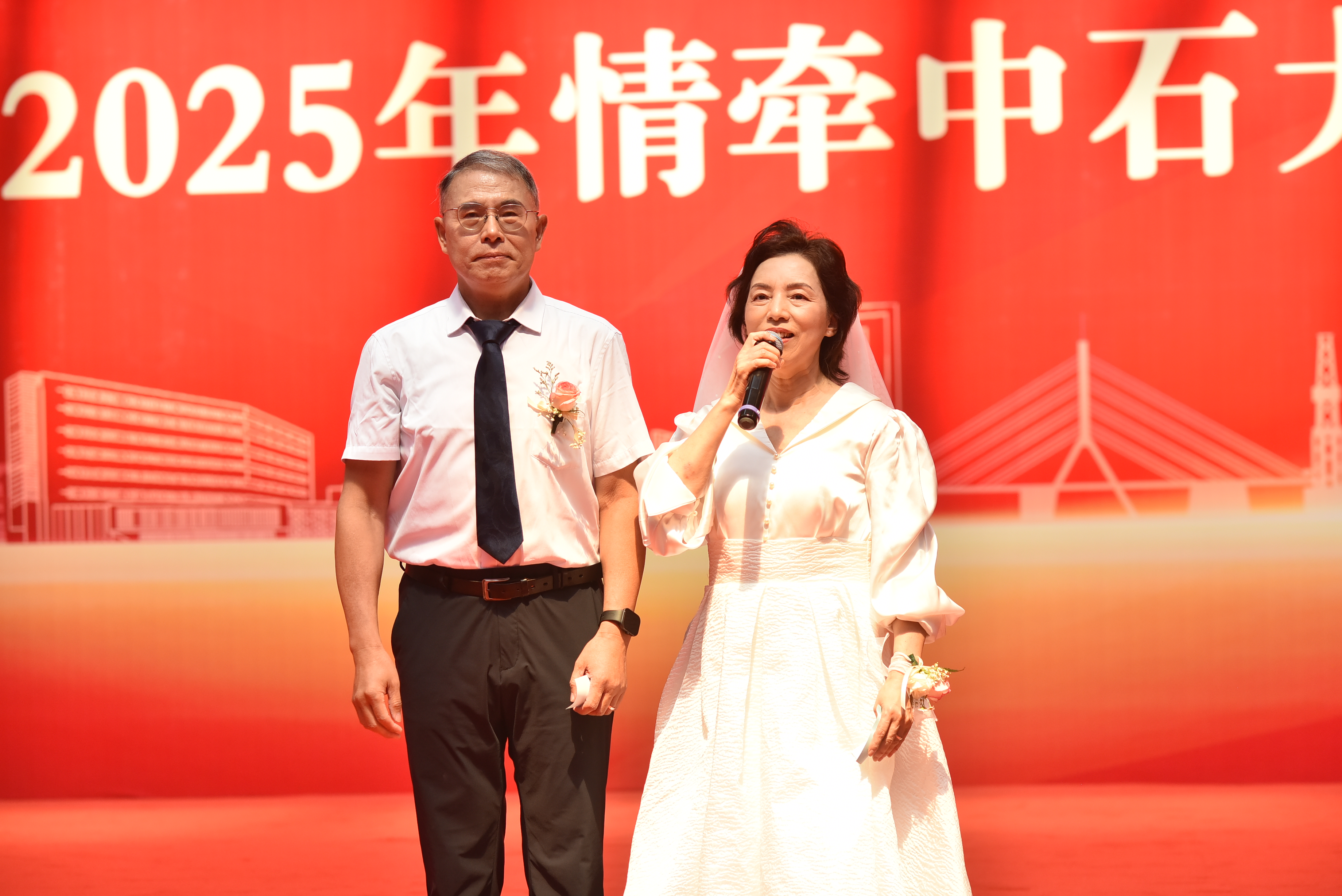 6月28日,“天山缘起 疆爱永恒”情牵中石大集体婚礼在校区红山湖体育馆举行,55对在新疆这片热土建功立业并喜结良缘的伉俪重返母校,共同举行结婚典礼。