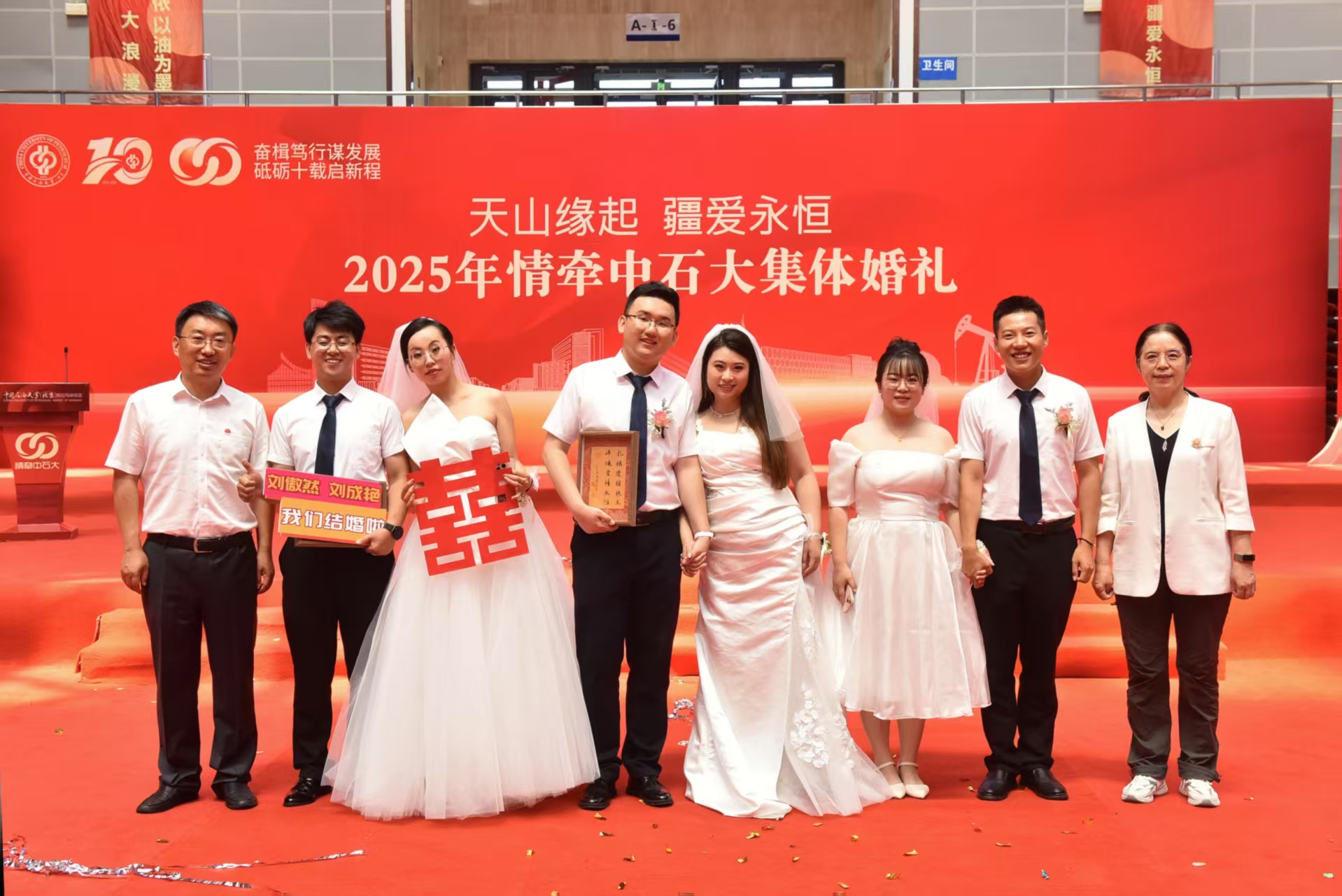 他们中,有扎根西部基层挺膺担当的中石大毕业生,有践行习近平总书记重要回信精神来到新疆投身教育强国建设的校区教职工,也有跨越山海执教边疆的银龄教师。克拉玛依市委常委、秘书长、统战部部长古鸿飞,政府相关单位领导,全体校区领导、职能部门及学院负责人,广大师生及亲友代表共同见证这一浪漫时刻。
