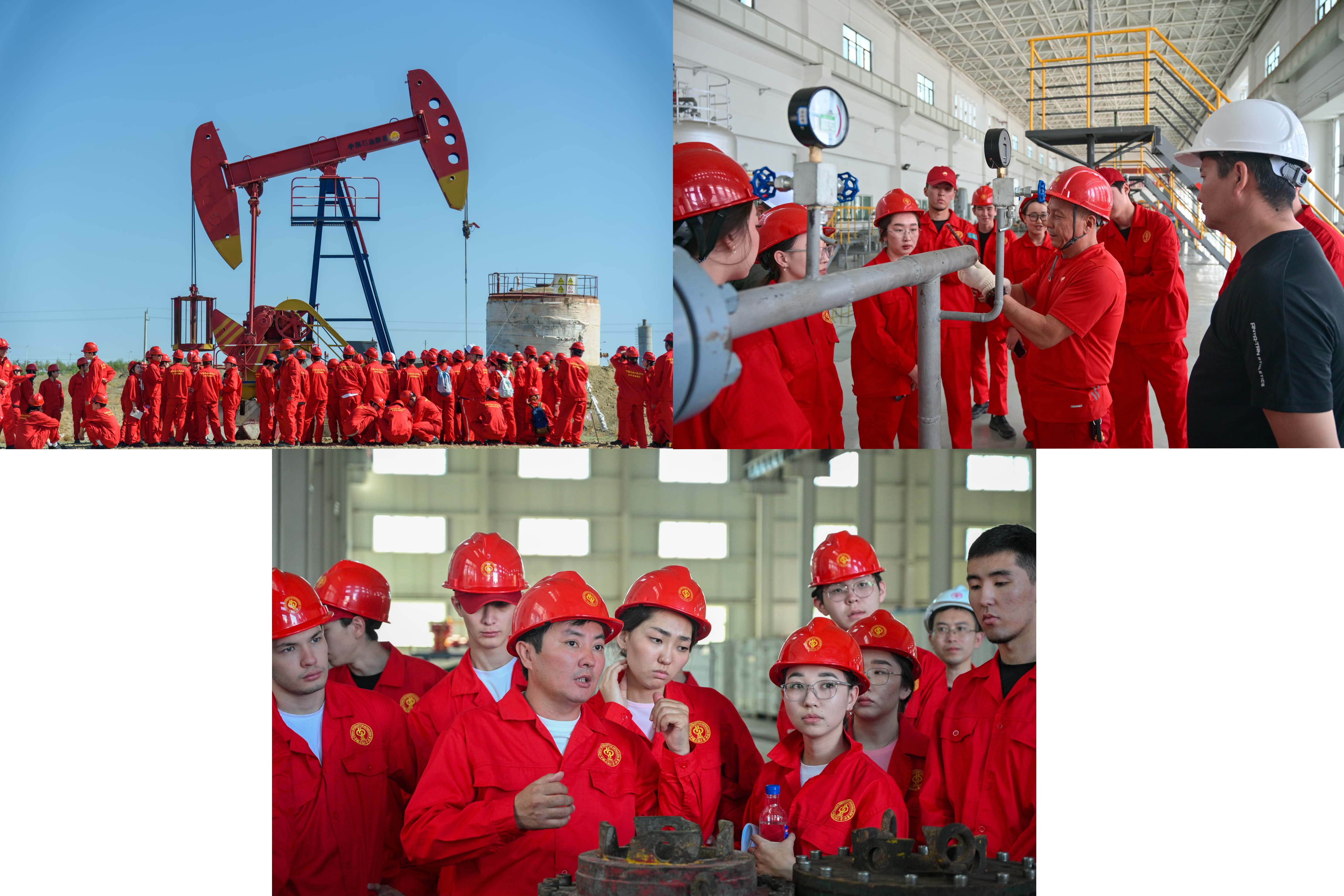 实习期间,同学们深入油田一线、钻井实训基地及实验室,多维度实践学习。探秘油井开采处理、钻井精准作业与地质勘探定向,将理论转化为现场认知;在校内实训中操作多通阀与抽油设备、模拟井喷应急处置、规范巡检修井设备并探索仪表远程控制,了解石油生产与运行。