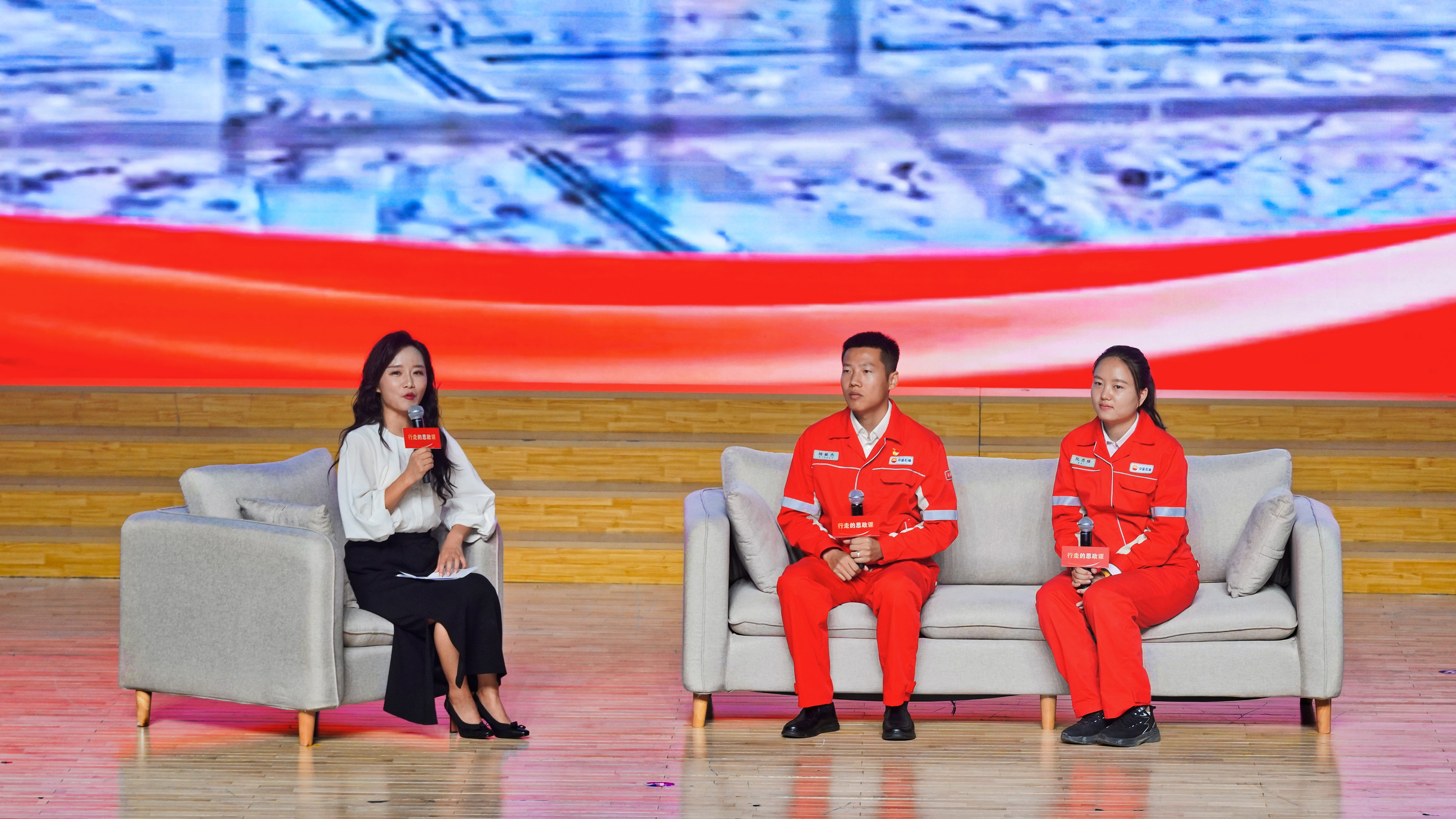 校友杨敏杰、阮思雅分享从校园到油田、从学子到建设者的成长故事。人民网 李欣洋摄