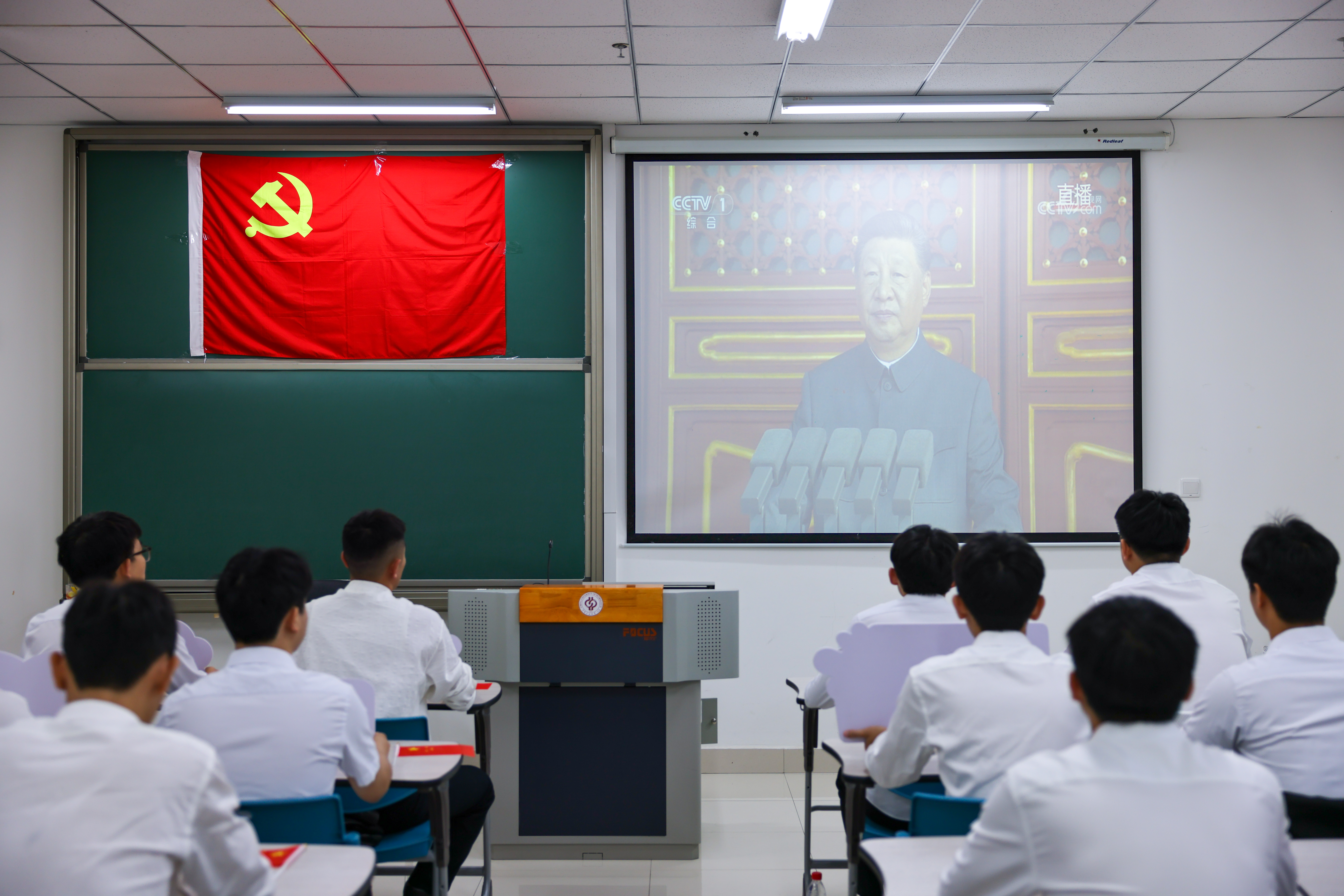 9月3日,纪念中国人民抗日战争暨世界反法西斯战争胜利80周年大会在北京天安门广场隆重举行,中共中央总书记、国家主席、中央军委主席习近平发表重要讲话并检阅受阅部队。校区师生们相聚在报告厅、会议室、教室等地,共同观看大会直播,认真学习习近平总书记重要讲话精神,讴歌伟大抗战精神,凝聚起蓬勃向上的精神力量。
