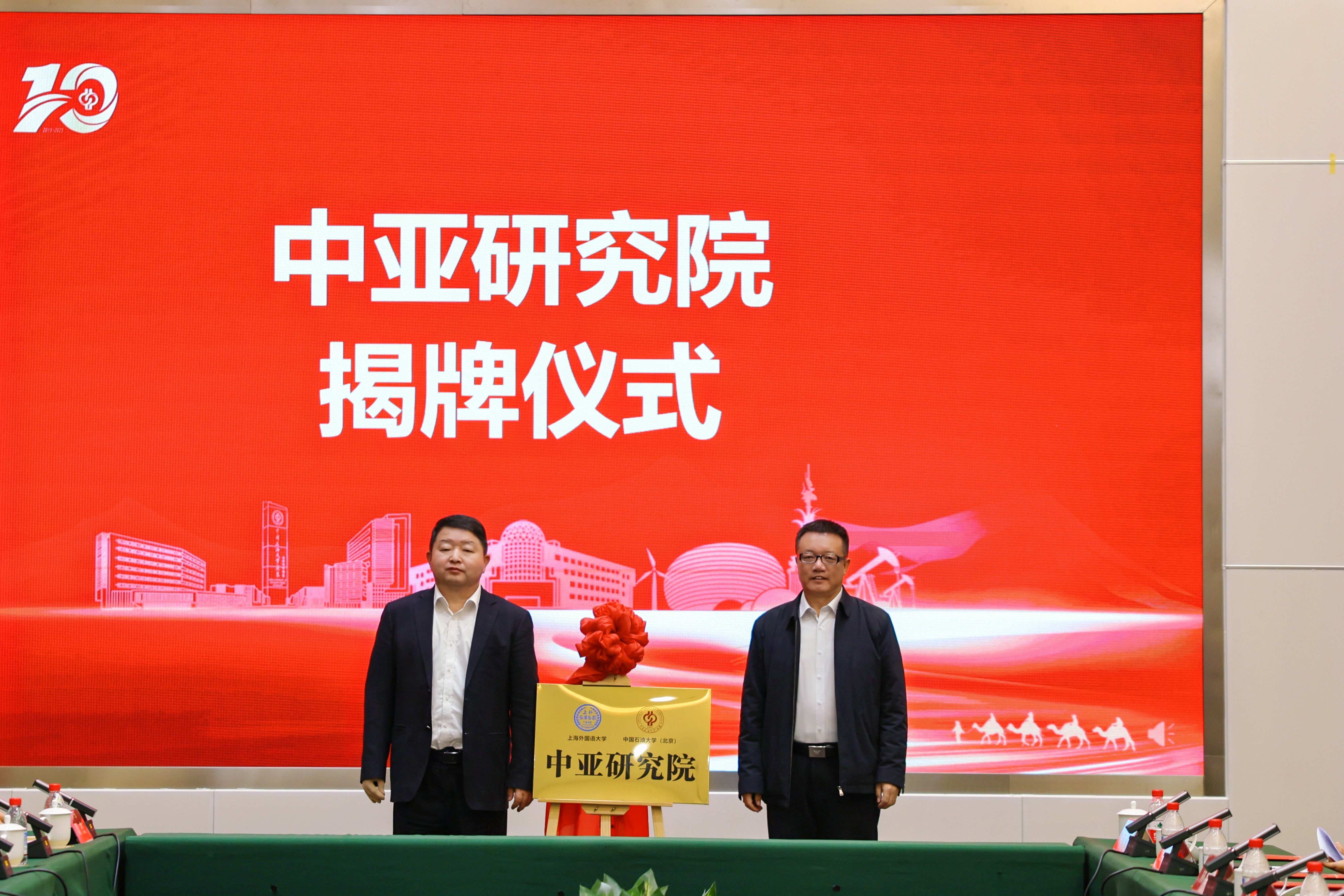 在“中亚研究院”揭牌仪式上,上海外国语大学副校长林学雷与邢晓凯共同为研究院揭牌。该研究院由两校共建,旨在服务“一带一路”倡议,深化对中亚地区的研究,为促进教育合作与人文交流提供智力支持。