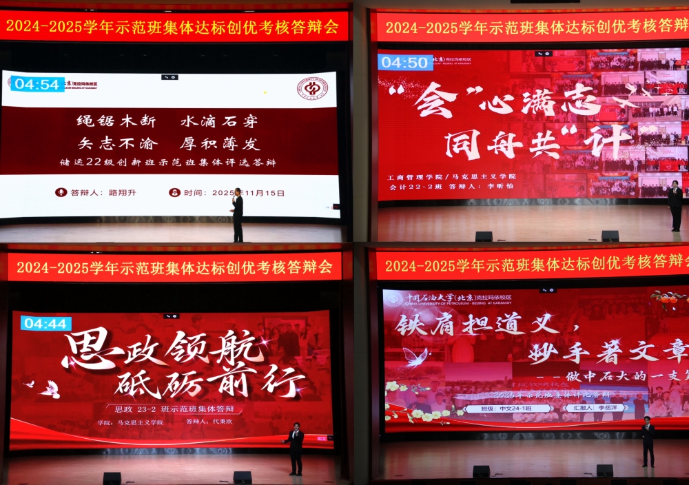 经评委综合评定,油气储运工程专业2022级创新班、会计学专业2022级2班、思想政治教育专业2023级2班、汉语言文学专业2024级1班获评2024-2025学年校区“示范班集体”荣誉称号,石油工程专业2023级3班等33个班级获评2024-2025学年校区“先进班集体”荣誉称号。评委老师共同为获奖班级颁发荣誉证书,并勉励他们珍惜荣誉,持续发挥示范引领作用。