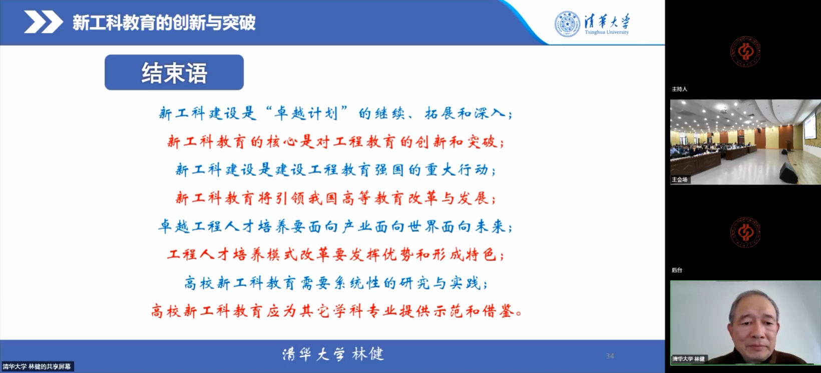会议特别邀请国内工程教育领域权威专家、清华大学研究院教授、国家工程教育多学科交叉创新引智基地执行主任林健作专题报告。林健以七大核心模块为脉络,系统勾勒出新工科建设的核心框架与实践路径,为新工科教育改革提供了权威指引。一是明确新工科人才培养标准,涵盖学科知识、专业能力、非专业能力、综合素质四大维度,构建全面立体的育人目标体系;二是提出柔性化设计专业培养方案,需从丰富多元的课程与教学资源供给、跨类型课程学分认定机制、新专业方向动态认可路径三方面发力,增强培养方案的适配性与灵活性;三是强调重构模块化、综合化、项目化、挑战性兼具的专业课程体系,打破传统学科壁垒,强化知识的关联性与应用性;四是明确课程教学内容改革要求,需兼顾有效性与稳定性、前沿性与系统性、应用性与实践性,实现理论与产业需求精准对接;五是倡导以提升学生学习兴趣、参与度、学业挑战度及学习效果为核心,重塑互动式、探究式、个性化的教育教学方式;六是系统阐释多方协同育人实现路径,指出高等院校、各类企业、各级政府、科研院所、行业组织需依托现代产业学院平台,深化资源共享、责任共担的协同机制;七是突出新工科教师队伍建设要求,既强调教师须具备跨学科素养,也明确队伍构成应兼顾学科背景交叉性、知识结构互补性、年龄结构合理性、学缘结构多元性、工作经历多样性,筑牢育人核心支撑。