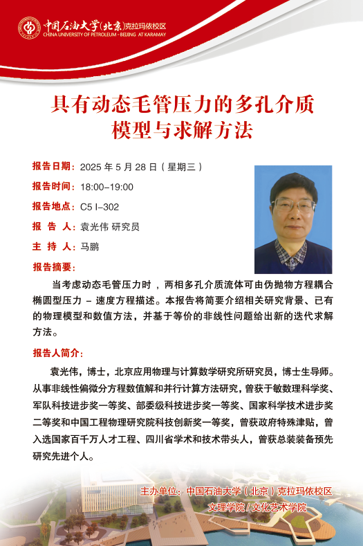 ”具有动态毛管压力的多孔介质模型与求解方法“学术前沿讲座