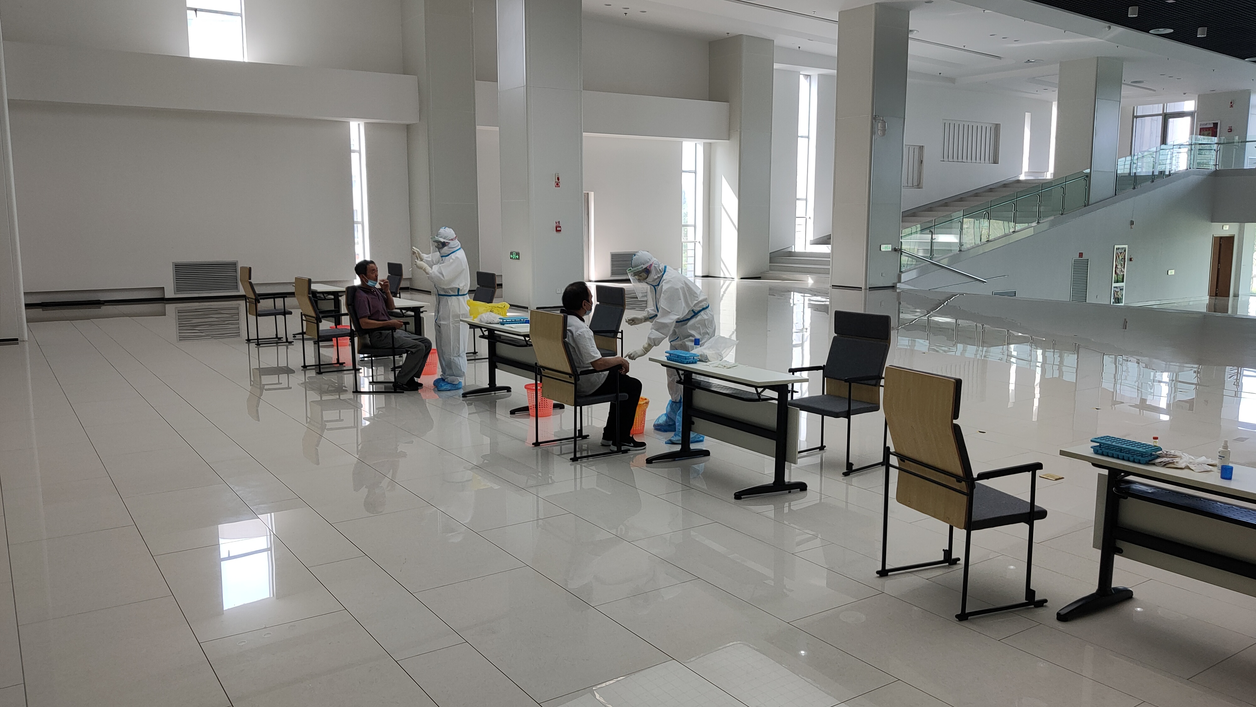 根据克拉玛依市疾病预防控制中心“应检尽检”要求及校区疫情防控工作安排, 6月19日,校区在J2国际交流中心组织开展第一批人员核酸检测工作。参加本次检测的人员包括校区教职工、学生管理人员、保卫及后勤服务人员等共计210人。