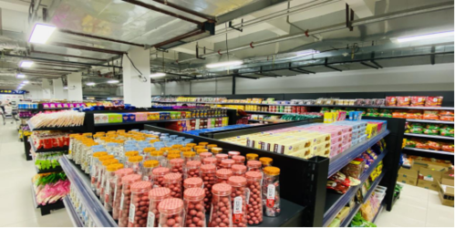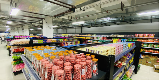“成长”商超分商铺区域和超市区域。商铺共计16间,包含药店、精品、理发、通讯、烘焙等业态种类;超市面积近1000平方米,包括生活百货、办公文具、体育用品、水果饮料、粮油调味、家居针织、洗护用品等。