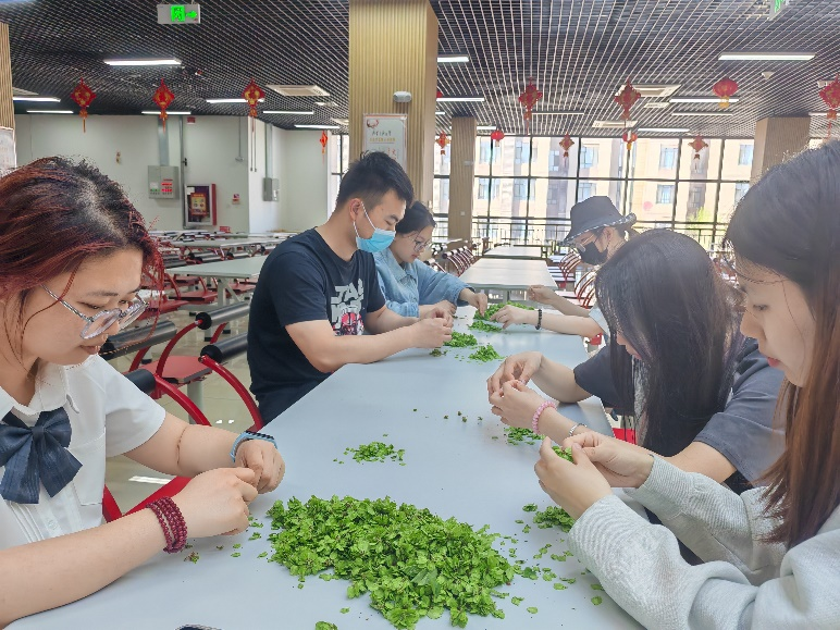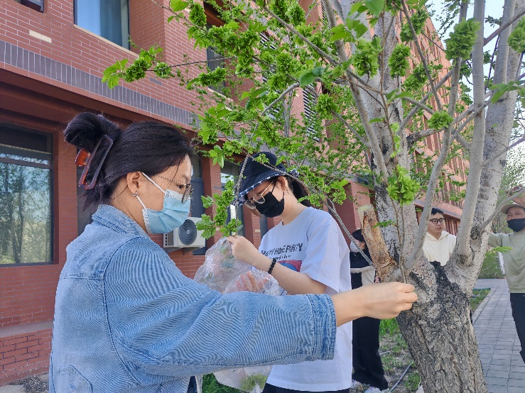 本次活动在K7学员公寓北侧采摘榆钱。同学们两人一组,以高效合作的方式将榆钱装袋。在采摘的过程中,欢声笑语不绝于耳。随后,同学们将采摘的榆钱进行挑选、清洗、沥干水分,与干面粉充分混合,确保每一颗榆钱都裹上面粉,再撒上适量的盐调味,将其蒸煮6-8分钟制成美味的榆钱饭。最后,大家共同品味这丰硕的成果,共享劳动的喜悦。