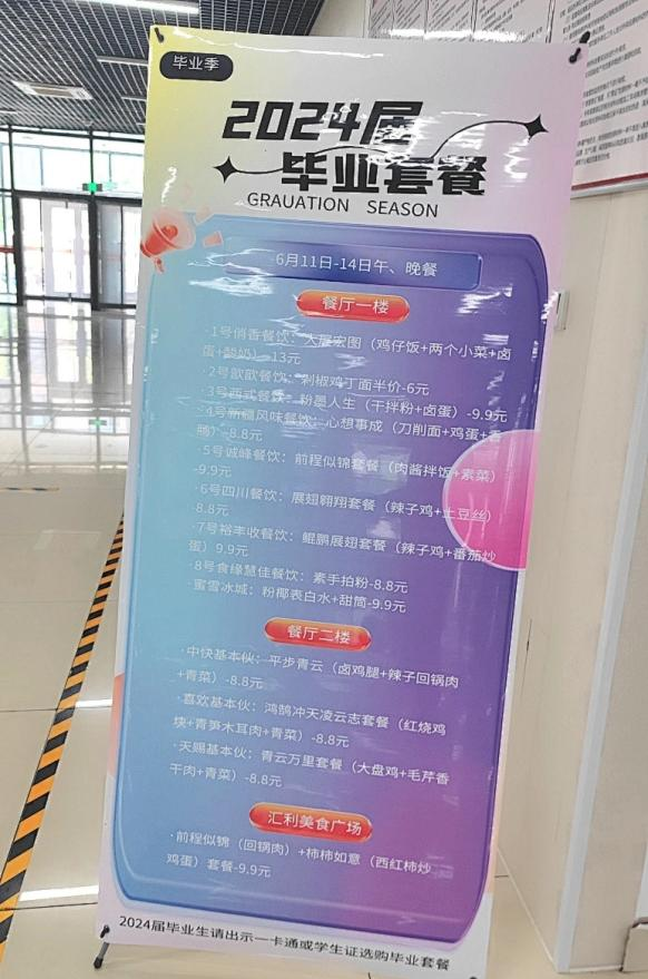 为了让毕业生在临行时感受母校的关怀,6月11日-14日午晚餐阶段,第三学生餐厅精心设计并推出13款毕业生专属套餐,让毕业学子铭记“石大味道”。