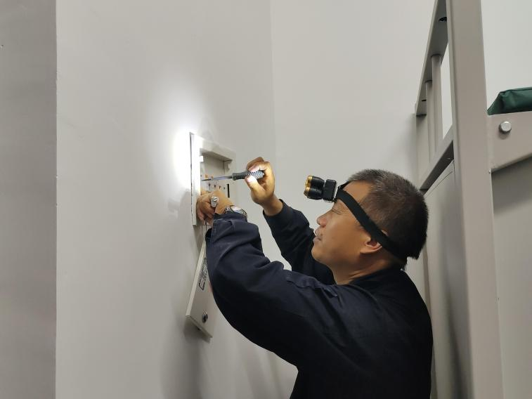赛前校园管理部对学校的供电、供水系统进行了细致的检测、检修,及时排除各类潜在隐患。大赛期间,水电工和维修人员随时待命,对校园内的水电和基础设施及时响应,做到“即报即修”;同时,不定时巡查校园配电房、路灯以及赛事用电设备,确保所有设施设备处于正常运行状态。