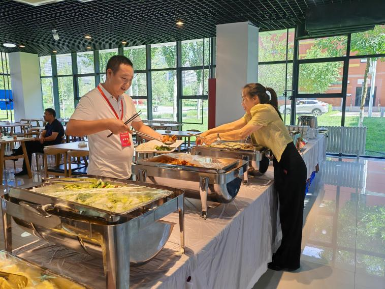 菜品上统筹兼顾,在基本大伙保障基础上,新增风味档口和自制饮品作为补充,充分考虑参赛选手们的口味差异,兼顾各民族选手饮食习惯,荤素搭配、品类丰富、营养均衡,同时自助餐与窗口供餐相结合,力求为参赛选手们提供最佳的用餐体验。校园管理部严格执行大宗物资集中定点采购、菜品留样等要求,所购菜品新鲜、物资安全。大赛期间,校园管理部顺利完成近1000名参赛师生及工作人员的饮食保障工作,为大赛提供了安全、优质的餐饮服务。