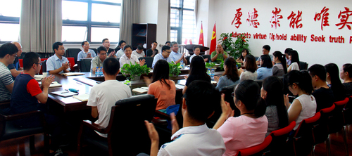 张来斌还与校本部派驻克拉玛依校区的全体干部进行了座谈交流,校区干部汇报了进驻校区以来的工作及工作中存在的问题,并对学校的培养和信任表示感谢。