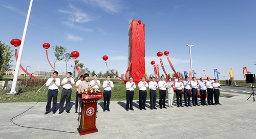 教育部副部长、党组成员朱之文,新疆维吾尔自治区党委常委、副主席艾尔肯·吐尼亚孜,克拉玛依市委书记、市人大常委会主任、新疆油田公司党委书记、副总经理陈新发,中国石油大学(北京)校长张来斌共同为校区校牌揭幕。鲜艳的红绸缓缓落下,刻有中国石油大学(北京)克拉玛依校区校名和校徽的石质校牌在阳光下熠熠生辉。