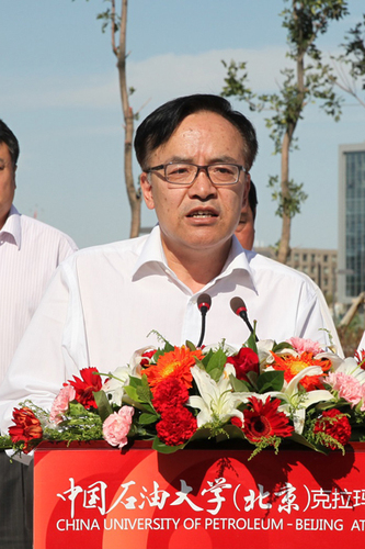 张来斌在致辞中代表校党委、校行政向关心、支持校区建设发展的各级领导和各界友人表示衷心的感谢。他说,克拉玛依校区的建立和启用,是学校在新的起点上建设高水平大学的重要标志,也是学校更好地服务新疆、服务地方的重要体现,具有里程碑式的重大意义,必将载入新疆高等教育和中国石油大学的发展史册。石大将按照“一校分两区,两区属一校”的布局,通过差异化战略,促进两校区互补借力协同发展,共同打造石油石化学科领域世界一流研究型大学;将按照“高层次、应用型、国际化”的理念,把克拉玛依校区建设成为我国高等工程教育改革的示范基地,为服务“一带一路”建设和国家能源发展战略做出积极贡献。