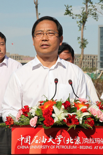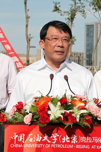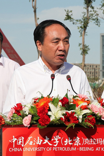 朱之文发表了热情洋溢的讲话,代表教育部向学校师生员工致以热烈的祝贺,向为校区付出辛勤劳动的建设者表示由衷的敬意,向新疆维吾尔自治区和克拉玛依市党委、政府长期以来对中国石油大学(北京)的支持表示感谢。他说,中国石油大学(北京)多年来秉承“厚积薄发,开物成务”的校训,实事求是,艰苦奋斗,开放办学,严谨治校,形成了优良的办学传统和鲜明的办学特色,是我国石油化工行业高层次人才培养的重要基地,为我国社会主义现代化建设特别是石油化工产业发展作出了重要的贡献。建设好中国石油大学(北京)克拉玛依校区,对于促进新疆经济社会发展,引领新疆高等教育结构调整,推进新疆产业升级,服务国家能源战略和“一带一路”核心区建设,具有十分重要的意义。他希望学校按照中央“四个全面”战略布局,遵循“创新、协调、绿色、开放、共享”的发展理念,紧紧抓住丝绸之路经济带核心区建设的重大历史机遇,深入推进学校综合改革,不断优化学科专业布局和人才培养结构,创新人才培养模式,立足新疆,面向西部,辐射中亚,努力把克拉玛依校区建设成为新疆民族团结教育的精神高地,应用型人才特别是少数民族人才培养的重要基地,成为学科优势明显、办学特色鲜明,在周边具有重大影响的高水平大学,在新的征程上不断创造新的佳绩,为全面建成小康社会做出新的更大贡献。他表示,教育部高度重视克拉玛依校区的建设和发展,将采取适当方式继续对学校予以支持,希望自治区和克拉玛依党委、政府加强对学校办学的支持、指导与管理,为学校改革发展提供有力的保障。