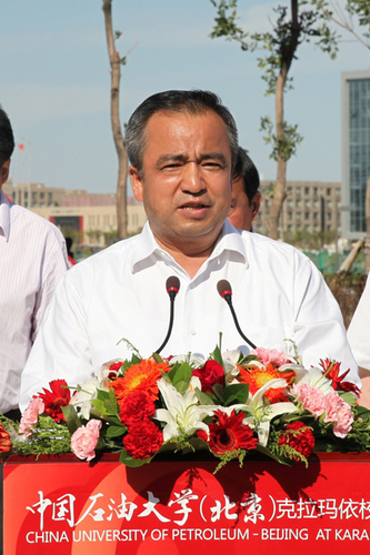 艾尔肯·吐尼亚孜在致辞中表示,中国石油大学(北京)克拉玛依校区的设立,是国家教育援疆的重要成果,是教育部以及中国石油大学(北京)的重要战略举措,对优化自治区高教布局,引领新疆高等教育事业的发展,为新疆培养高层次专业人才,提升新疆科技创新能力和综合竞争实力,服务新疆社会稳定和长治久安具有重要的现实意义和长远的历史意义。他希望克拉玛依校区面对新疆丝绸之路核心区建设的重大历史机遇和建设创新驱动发展的有力契机,充分发挥区域优势和品牌优势,坚持教育部、自治区、克拉玛依市共建的发展模式,走特色发展道路,高质量,高水准,为新疆建设丝绸之路核心区提供强有力的人才支持和智力保障。