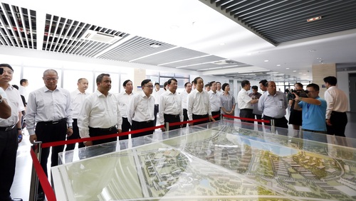 仪式结束后,全体嘉宾及领导参观了克拉玛依校区办学历程及事业规划展、校区沙盘和实训基地。