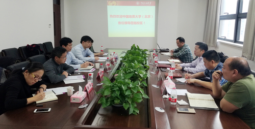 11月5日,中国地质大学(北京)副校长刘大锰一行5人到访中国石油大学(北京)克拉玛依校区,中国石油大学(北京)副校长、校区党工委书记、管委会主任张士诚等校区领导及相关部门负责人热情接待了刘大锰一行。