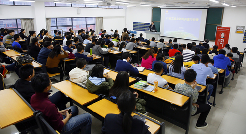 两个小时的讲座不时赢得了在场师生的强烈共鸣和热烈掌声;互动环节,贾承造院士通过幽默风趣、妙语连珠的回答在释疑解惑同时对首届新生提出了希望。他勉励校区学生要对石油石化行业未来发展充满信心,在打好理论基础同时多利用校区优势,通过油田生产实习和社会实践增加对油田的感性认识,尽快熟悉和热爱自己未来要从事行业,培养“学石油、爱石油、我为祖国献石油”的专业学习热情。