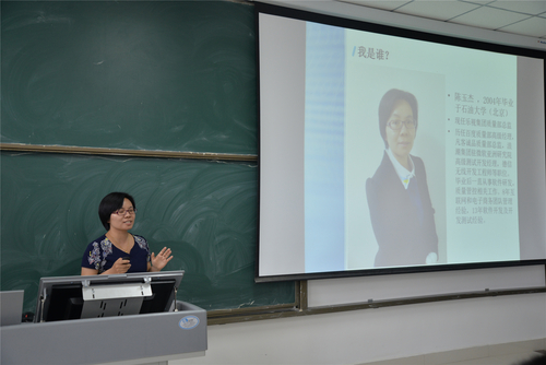陈玉杰是我校电子信息工程专业毕业的优秀校友,她结合自己13年来的工作和招聘经验,为同学们介绍了软件人员应该具备的素质,即精神、方法和知识。她认为软件人首先应具备锲而不舍的精神,在工作中和人性中的懒惰、恐惧、孤独作斗争;其次学会做事的方法,在互联网公司工作需要有道可循;最后是提高知识储备,在信息爆炸的时代,知识的积累显得尤为重要。