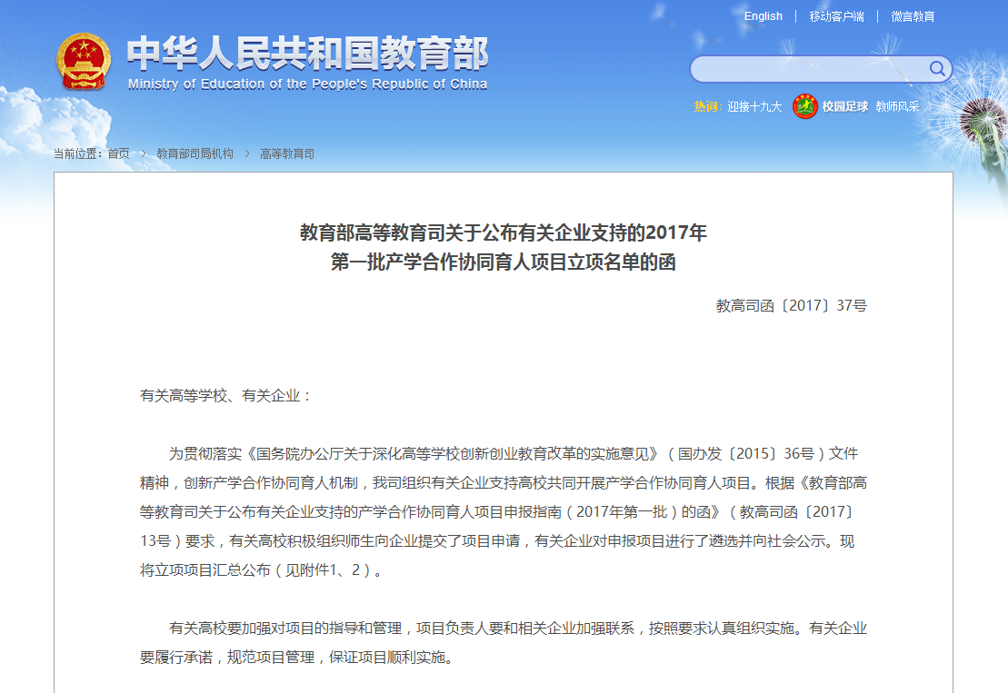 ——一项教育部产学合作协同育人项目立项。近日,教育部高等教育司公布2017年第一批产学合作协同育人项目立项高校项目名单,由校区工学院机械系主任宋强老师主持的《智能制造技术创新实践实训平台建设》获教育部产学合作协同育人项目立项资助。这是教育部设立该类项目以来校区首次获批。