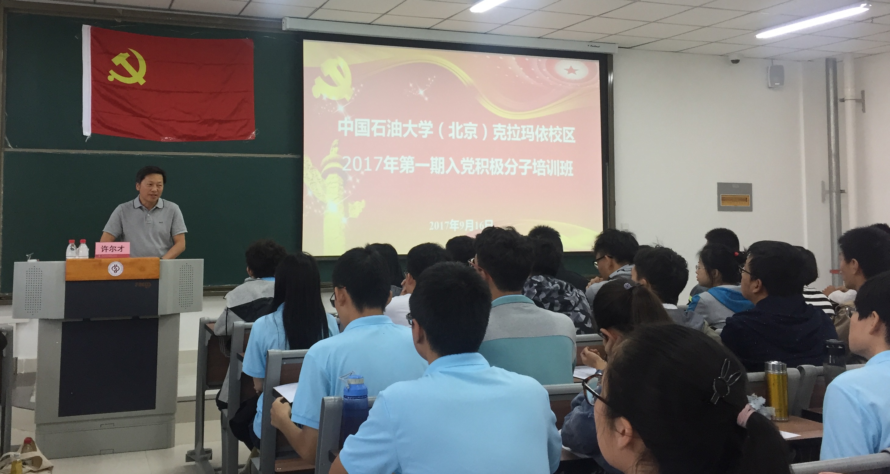为做好入党积极分子的培养教育工作,切实提高入党积极分子的政治素质和理论水平,不断加强入党积极分子队伍建设,9月16日至17日,中国石油大学(北京)克拉玛依校区举行了第一期入党积极分子培训班,校区共77名入党积极分子参加了培训,其中学生积极分子62名、教职工积极分子15名。