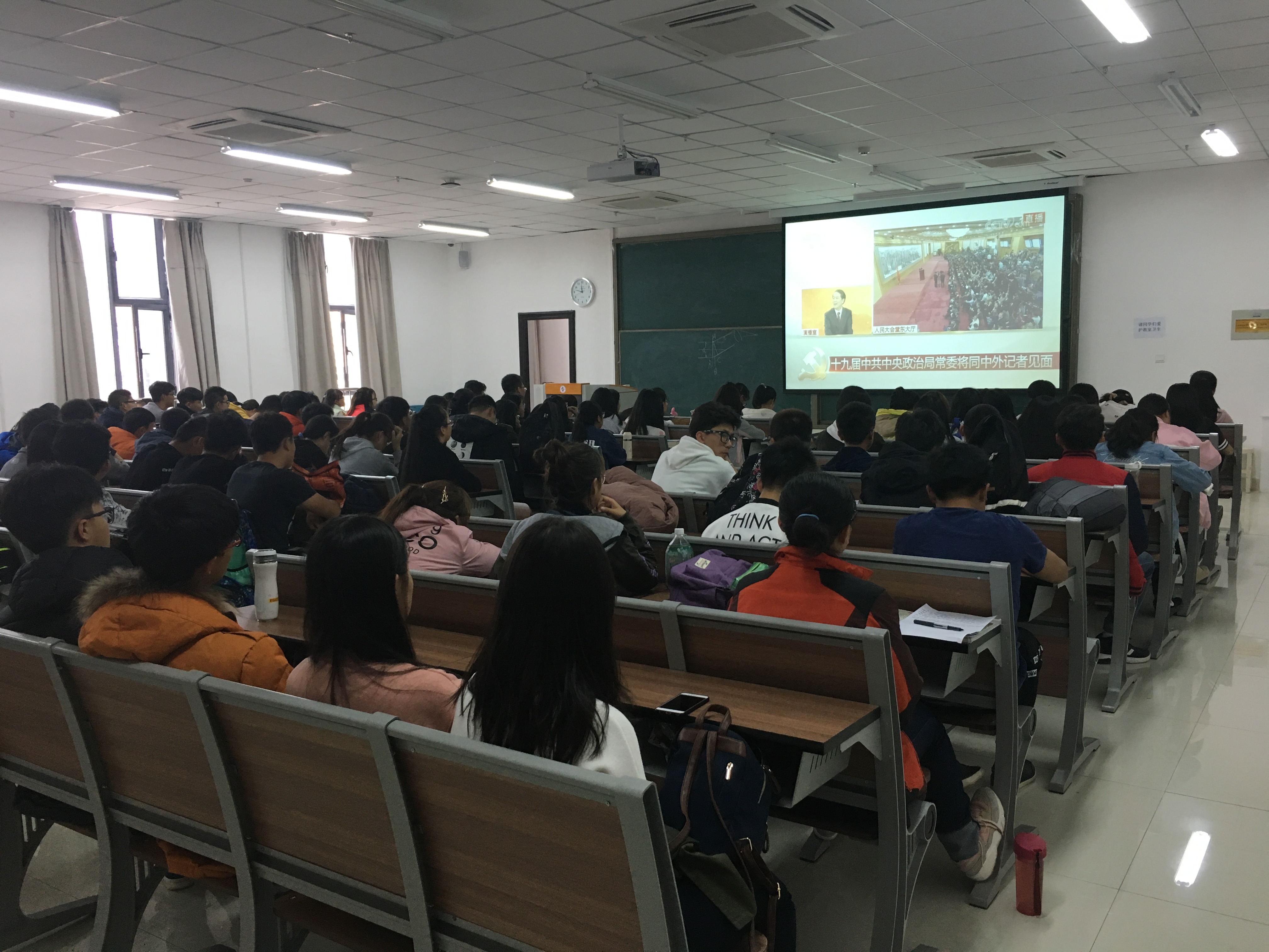 10月25日,中国石油大学(北京)克拉玛依校区组织学生观看习近平总书记在十九届中央政治局常委同中外记者见面时的讲话直播,并召开学生学习十九大精神座谈会。校区党工委常务副书记陈桂刚参加座谈会。