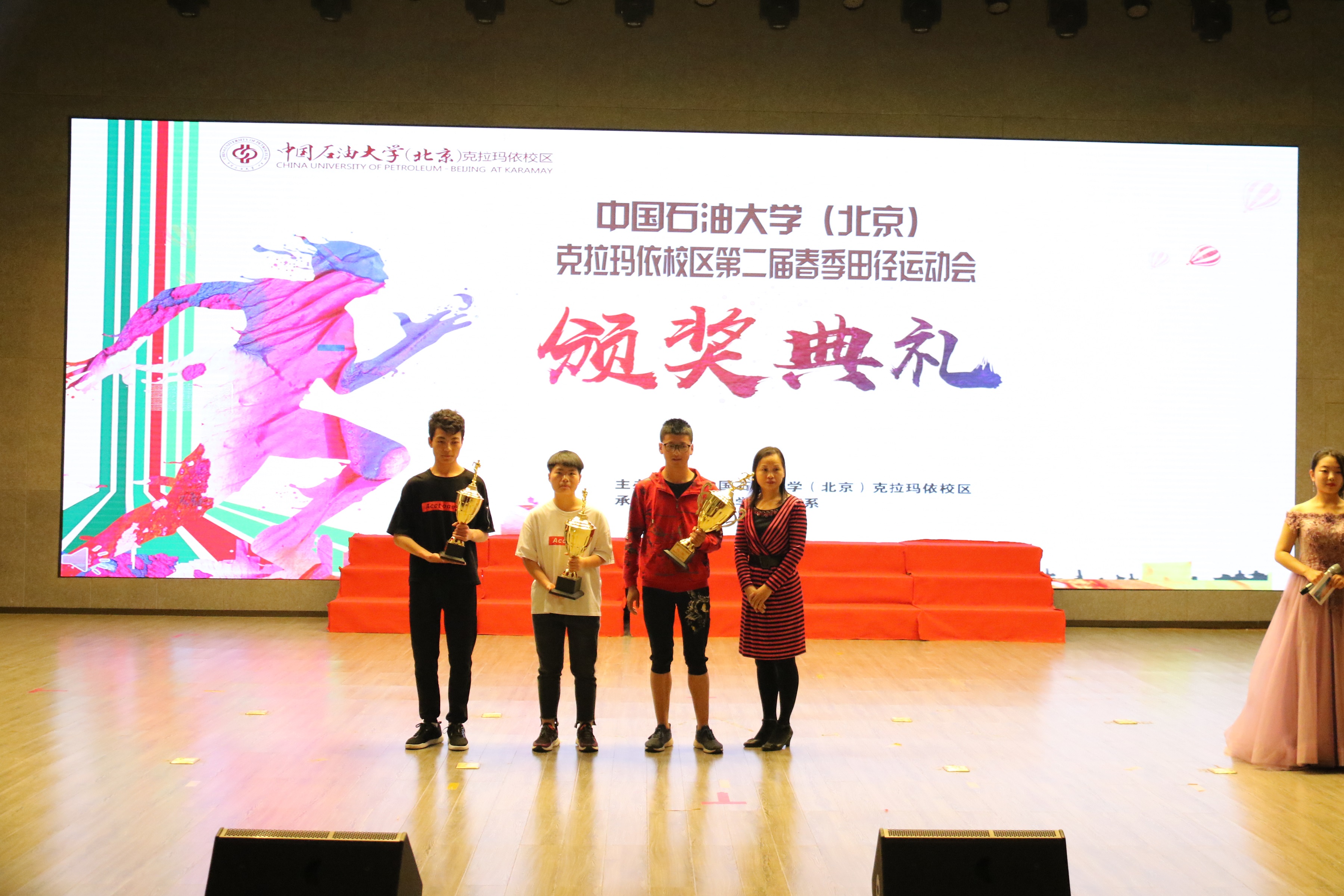 活动现场,校区缤纷女子协会、校区街舞社、傲卓英语话剧社、演讲与辩论协会、大学生舞蹈团、民乐团等学生社团为本次比赛提供了精彩的节目展演。同时,校区对第二届春季田径运动会获奖集体及 “六十五载砥砺奋进,红山湖畔悦跑青春” 校区第二届团体环湖跑比赛获奖班级进行了颁奖。